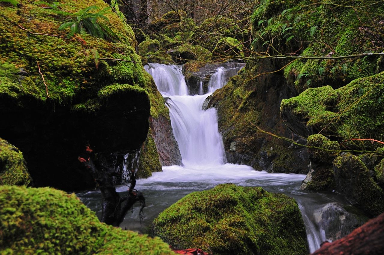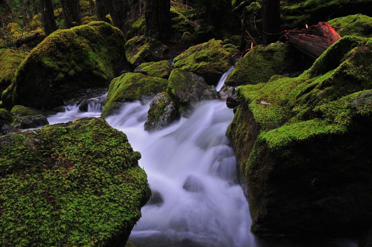 There was only 1 car at the TH when we arrived at the TH about 10:00 AM. Today Lena Creek did not leave us "high and dry" to quote Craig Romano in his Day Hiking Olympic Peninsula book! When we reached the beautiful mossy rocks area just prior to the first bridge at 1.9 miles,there was water over the trail which would have taken me 3 ankle deep steps to cross. If Bob hadn't just had rotator cuff surgery there was an area to the right of the trail where he thinks we could have crossed under a log and on rocks. The bridge was not in sight at our turn back point, but I'm sure it was just around the corner. We met 3 backpackers and one other group as we returned to the TH.