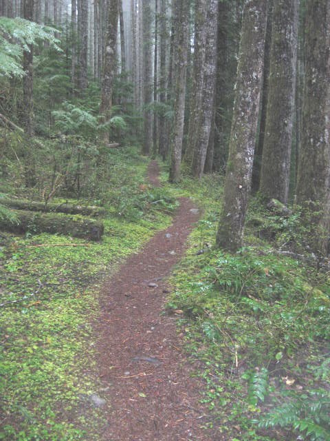 The East Fork Foss/Necklace Valley trail is a very easy 10.6 mile round trip with only 1200' gain up a gentle narrow woodland valley. We did not actually climb up to the Necklace Valley proper where all the spectacular lakes are. We turned around at the base of the steep part.