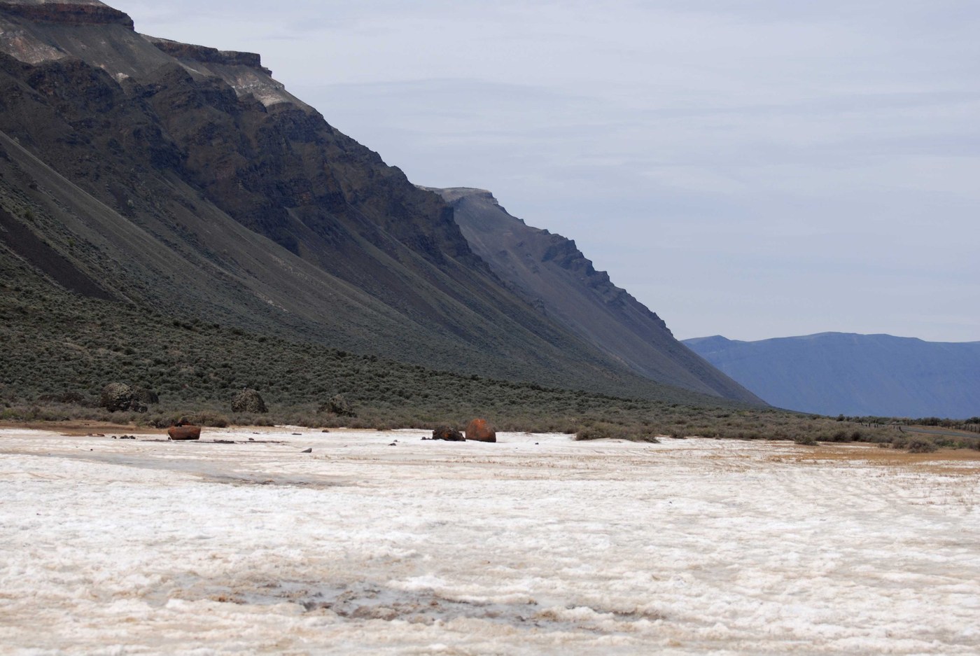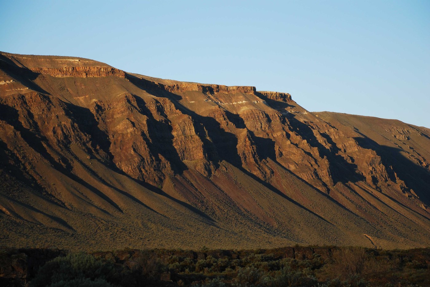 I dropped off the railroad grade at the first rocky area past the marshes, after admiring scores of ducks that refused to sit for a photograph. There wasn't really a trail, but as usual in this area, it's hard to get lost, with mountains flanking the valley and the features of the mighty uplift of Saddle Mountains to use as wayfinders.