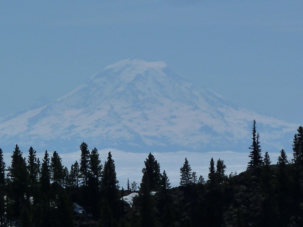 We pushed on a bit further, since beyond Camp Windy the trail was substantially drier with many switchbacks snow free. So we made it to about a half mile or so below the summit, when I simply had had enough of the periodic drifts of snow. We'll be back soon, though, as the snow is melting fast. We did enjoy spectacular views of Rainier and Baker today.
