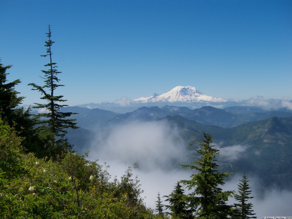 Arrived at the Bandera cutoff and headed up. Bear grass, tiger lilies,paintbrush, lupine, penstemon, heather are all in bloom! Very stunning up there, about 1/2 way up the scramble, I emerged above the clouds and had a nice view down the valley toward Seattle and also of Mount Rainier. This is the first time I've been to Bandera on a clear day so I was thrilled. Enjoyed a brief lunch with about 3 other parties of 2-3 each. Started back down the hill and found HOARDS of large crowds coming in and away from the Mason lake trail. Really, HOARDS! Groups of 20+ people! Lots of pets too and none were on a leash. Doesn't bother me at all, but some folks are afraid of dogs. Arrived back at the trailhead to find a mile long string of cars parked along the road. Glad I arrived early.