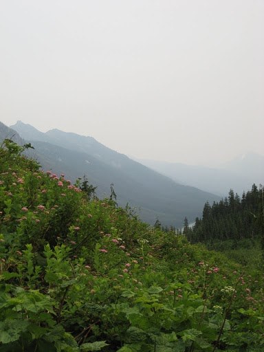 On the way up to Cathedral Rock, we passed a few parties coming out after an overnight at Squaw Lake. We only saw one other group on the entire 5+ mile PCT section - it was pleasantly solitary. Cathedral Rock was in and out of the clouds but we had great views up to Mt Daniel, to the ridge across the valley, south to Mt Stuart, and down to Hyas Lake. Some heather and other wildflowers blooming, but no big riotous show here.