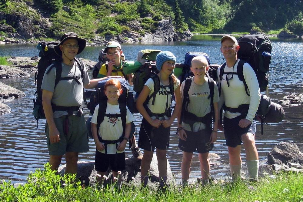 The hike up took us 3.5 hours with plenty of stops. After reaching the first lake or two, you’ll come to the fork shown in the photo. The right fork goes to several more lakes and campsites, including ours. The left fork goes to the biggest lake, also pictured, and eventually reaches some big rocks, a rarely-used helicopter landing site, and a scramble up Bald Mountain (which my friend enjoyed but said might be dangerous for the younger kids).