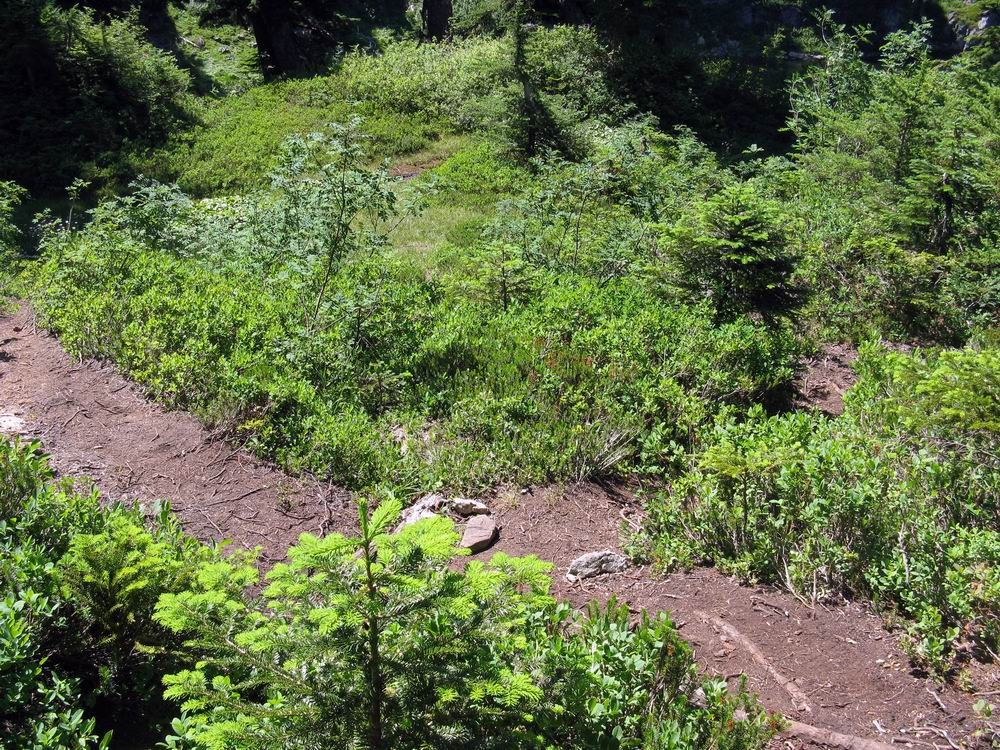 There were lots of berries arround our campsite and even more all along the trail to Bald Mountain. We saw a couple of people each day (this was midweek) doing the dayhike to Bald Mountain, but no one along the lakes on the right fork, and while there were some established campsites and fire rings, there was no evidence of recent use.