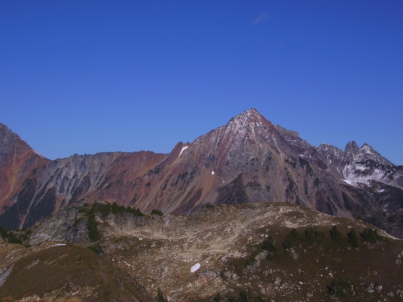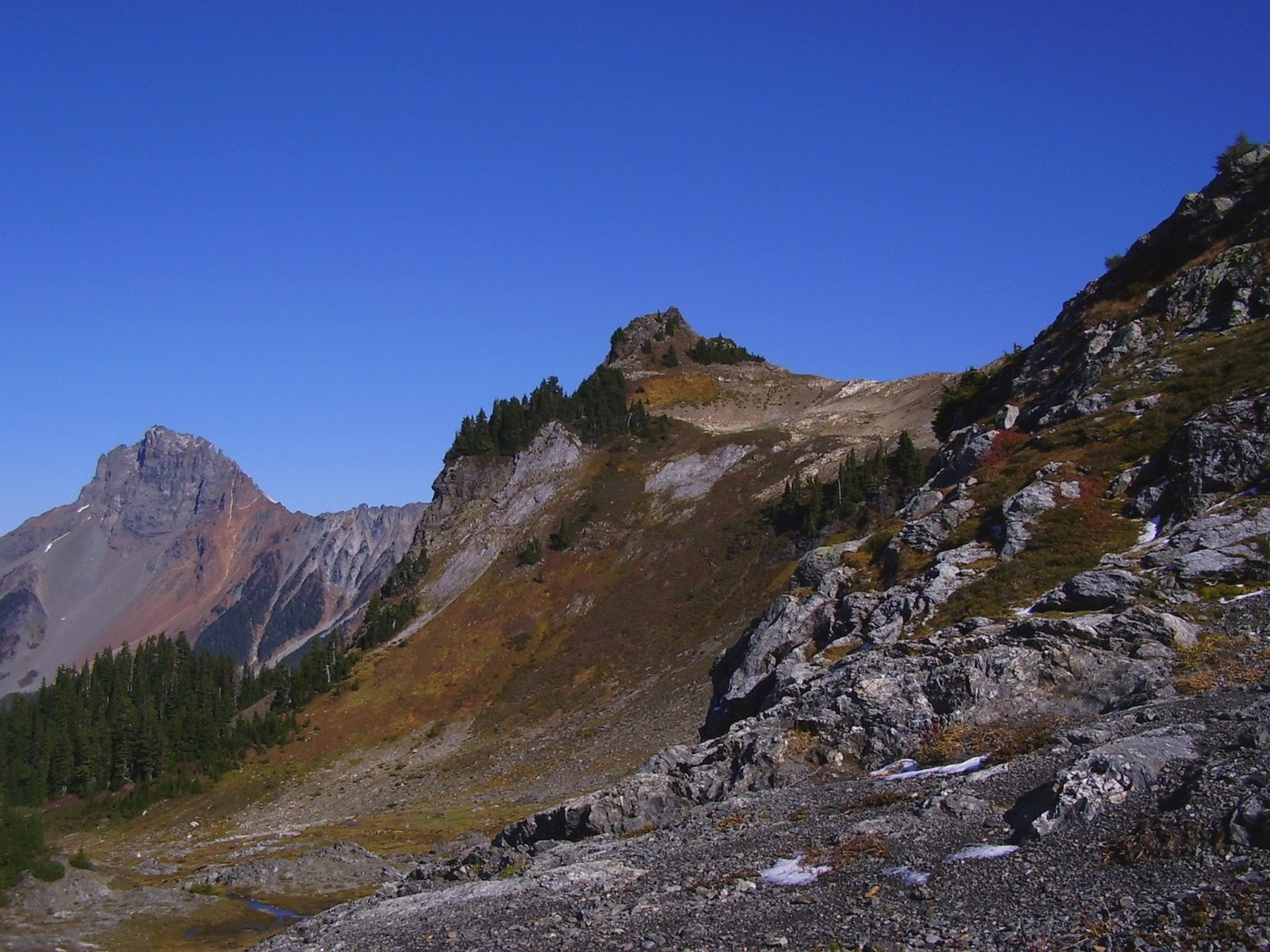 Dean met me in Burlington and we headed up to Highway 542 on a beautiful crisp fall day to hike to Yellow Aster Butte. The trail is muddy in a few places especially after the morning thaw but overall still in good shape. There had been a dusting of new snow in the higher elevations and some of the smaller tarns had a thin coat of ice which was mostly gone by afternoon. The fall colors are on the fade but it was still beautiful.