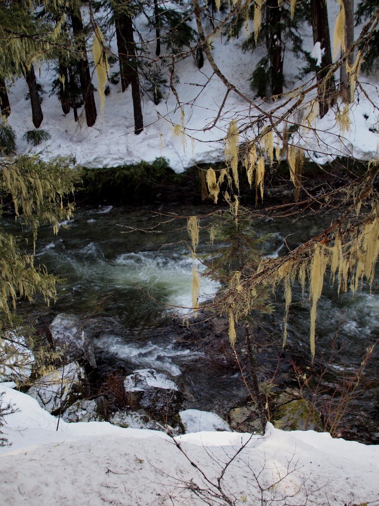 The trail was a bit difficult to find at times but we had route finders. There were a few obstacles-a large fallen tree with ice on it and a couple streams that were shallow enough to wade through. Our turn around, and lunch, was just north of Cooper Lake. Overall there was about two and a half to three feet of snow. Enjoy views of the river along the route and snow formations.