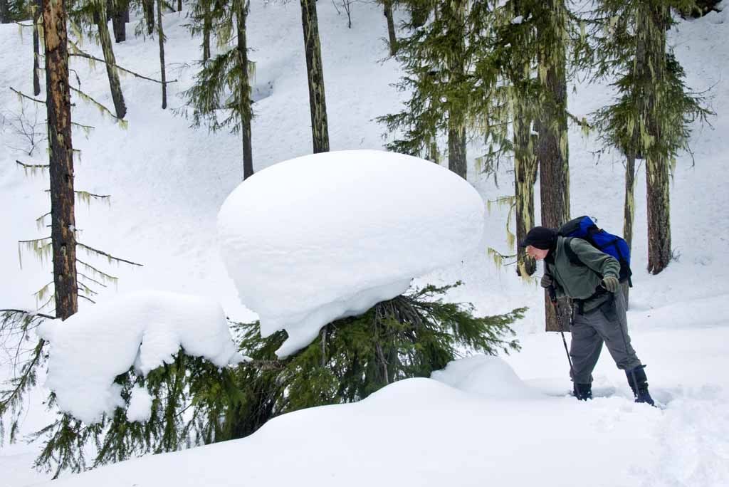 I led my 4th Saturday Snowshoe of the season for the Cascadians today to the Cooper River Trail, a new destination for me. At least that was the plan. As we started out from the road by the old guard station we were a little ways behind a group of 8 or so Seattle Mountaineers. When we got to the trailhead at the end of the campground, assuming they were also going up the Cooper River Trail, we just followed their track, but after 15 min or so when we kept heading north rather than curving west along the river I began to suspect that we were generally following the Waptus River Trail rather than the Cooper River Trail. Eventually I caught up to them & they confirmed that we were not on the Cooper River Trail. They were just out for exercise & to avoid avalanches. As the snow was deep (the Cle Elum paper said they had received half of their total winter snowfall in the past week) and they were breaking a very nice trail, we decided to follow them rather that backtrack & break our own trail. About noon we came to a small, open knoll on the hillside and stopped for lunch. After an hour or so we returned the way we came. Back near the river we found where some others behind us had started following our tracks, then realized the mistake & headed up the river. Next time I'll know. We went over to look at the river, which was beautiful, then walked through the campground back to the car. The day was supposed to be cloudy with a 50% chance of precip, but it just got nicer & nicer and was mostly sunny by the time we were back to the Cle Elum River bridge. Though we didn't end up going where I had planned & never knew exactly where we were or where we were going, we still had a nice walk through the forest without having to break trail. Under the circumstances, what more could we ask for.