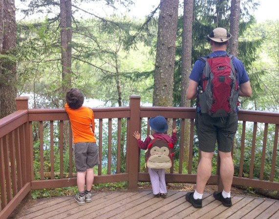 Our family of four hiked the 1.5 mile Round-the-Lake trail at Tiger Mountain. As usual, the High Point parking lot was mobbed. Many people were out with their kids, and I thought we'd have lots of company at Tradition Lake, but it was refreshingly uncrowded.