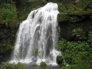 Pack Forest is located near Eatonvile, drive Hwy 161 through Eatonville to Hwy 7 or drive Hwy 7 direct from Tacoma. At .2 miles south on 7 from the junction is the Pack Forest entry. We decided to hike to the Little Mashel Falls. From the entry gate we drove up 1/4 mile to the parking lot left of the administration building. To get to the trail walk left from the administration bldg, signed "Lathrop Drive, Murphy's Ranch". Proceed on Rd. 1000 North about 1.8 miles. The road is flat then starts up hillgradually and eventually comes to a Y on the road. Go left. It is supposed to be Road 1070, but there is no sign there. Go 1/4 mile until you come to a rock on the left that says Falls with an arrow pointing to the path. Follow the muddy path. It will take you through a patch of tall grass, then more mud. The path will eventually descend down the hill. The path will Y, take the path on the right, do not continue down the hill. Continue on the flat path until it Y's again. Take the trail to the left and start down. There is a trail to the right that will take you to the top of the Bridal Veil Falls. There are deep pools below the upper. Return back on the trail and watch on the right for an obscure track that drops down. There will be steps going down, down, down. Turn right to the rock-slab pools at the base of Bridal Veil Falls. The Falls always amaze me. Very well worth seeing. It's about 4 miles round-trip.