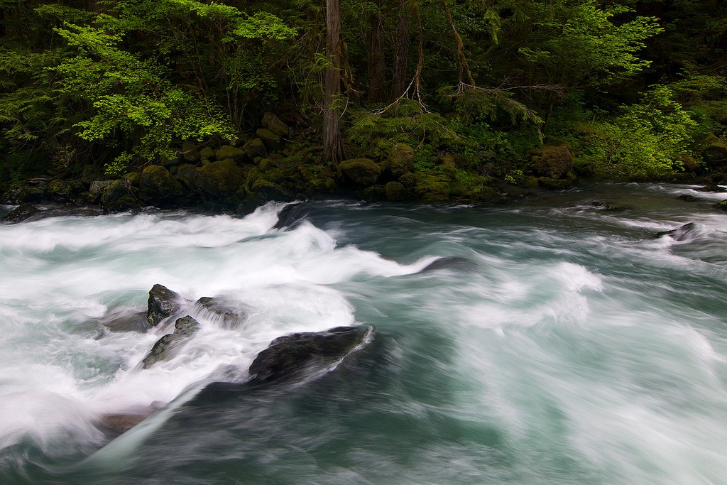 I was more than happy to drop my pack and spend ~forty-five minutes climbing on the boulders lining the rushing Duckabush with my tripod in hand, experimenting with various compositions and settings while other hikers arrived and/or left. The water was both colorful and crystal clear, and the sky cooperated by clouding over when I needed it to.