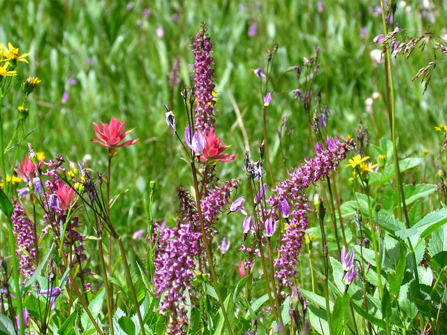 My first time on this trail, flowers are amazing! Weather was not perfect by any means. I started in down jacket and finished in rain jacket. I'm hoping we get summer next month? Saw very few people on the trail today but several short buses in the parking lots in the area. I camped at De Roux after this hike and went up Iron Peak about half way, no views were to be had, and I was breaking in new boots, so I turned back before reaching saddle.