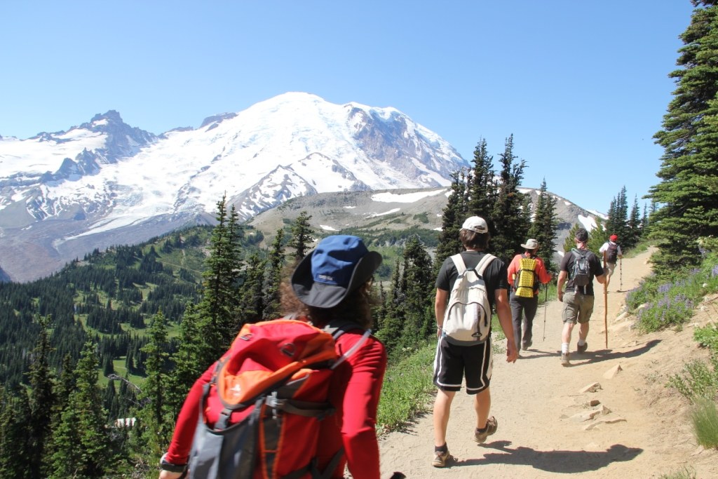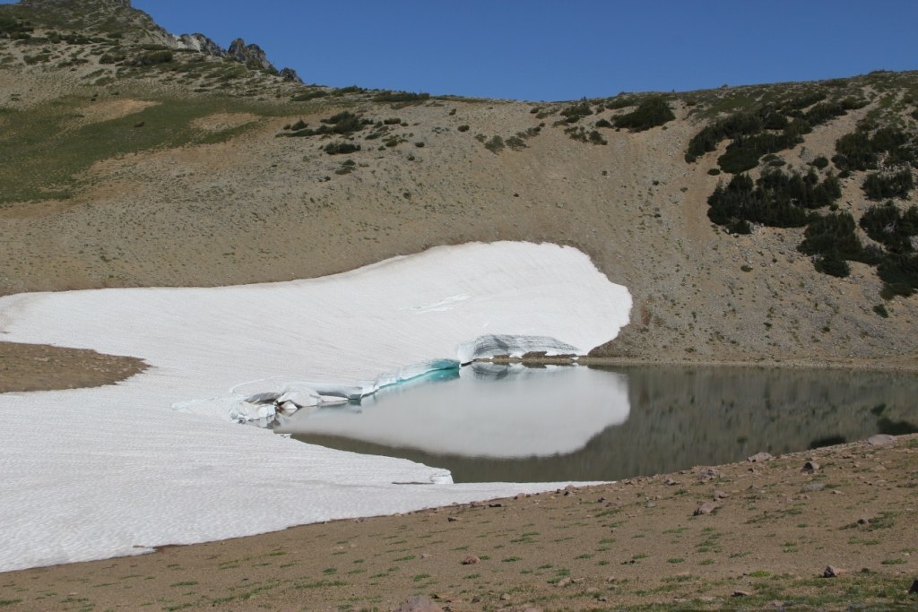 We started from Sunrise to the Fremont Lookout Trail. There were no snow patches on this trail and there were children hiking. A few blood-thirsty insects that our bug spray kept away and some wildflowers blooming. Frozen lake still has some ice on it and looked beautiful as we passed it.