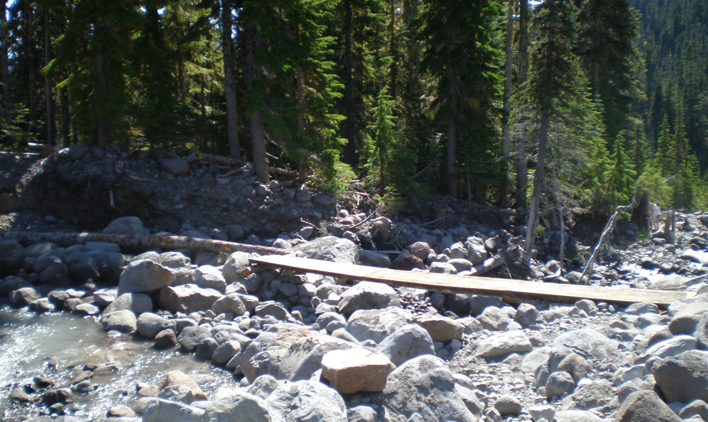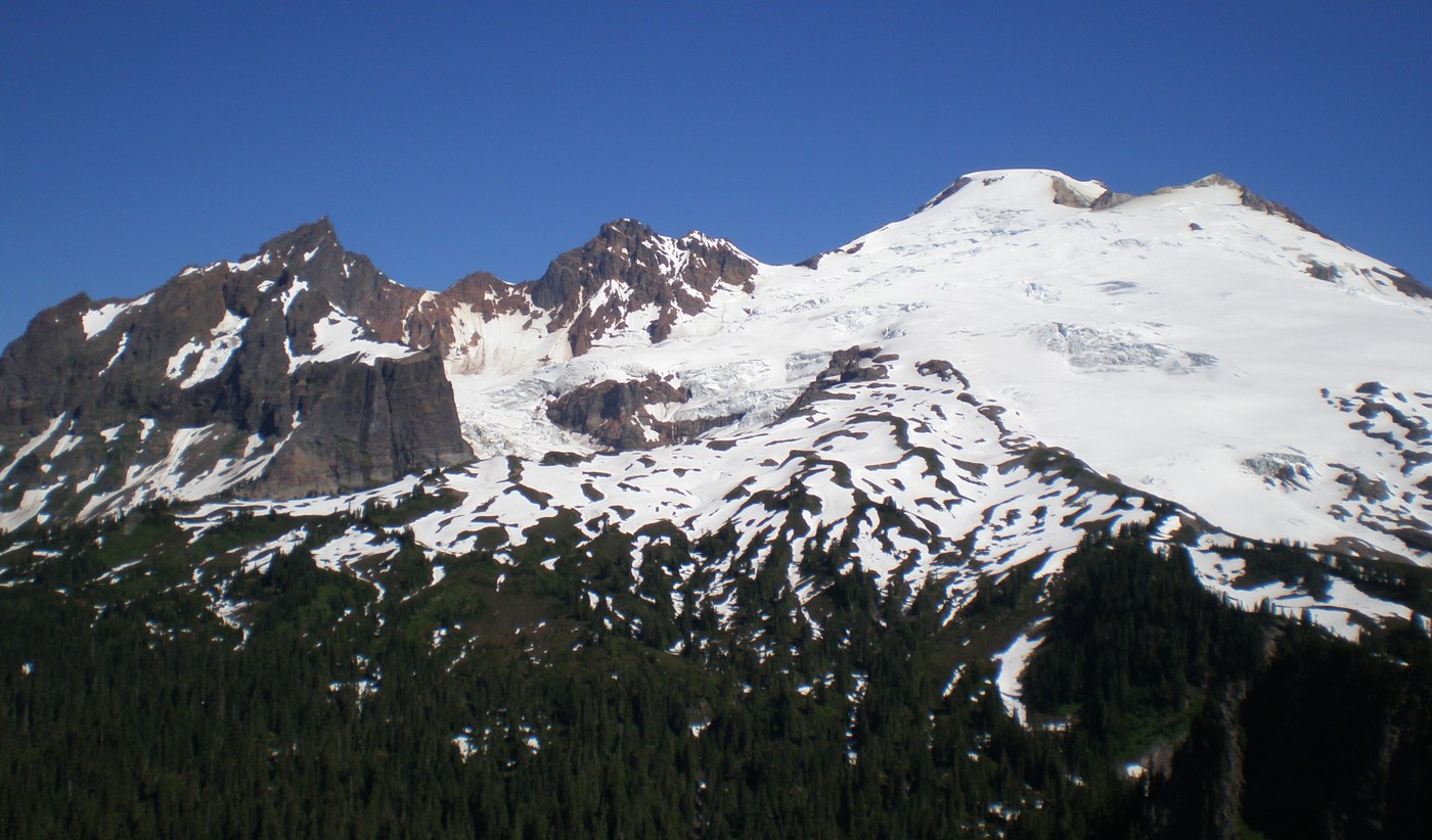 At 2 mi came to the junction for the Scott Paul trail; turned left to continue up to the Park Butte Lookout. After this, the trail leveled out somewhat and eventually I arrived at Moritz Meadow and the views of Mt Baker were breathtaking! About .5 mi further, arrived at the junction for the lookout and the Railroad Grade. Continued with my mission and turned left towards the lookout. A couple of hundred yards or so from the Railroad Grade junction is a blow down across trail; was able to straddle (barely) and cross over without too much difficulty. Not much further came across a sign for a wilderness toilet and here is where the snow started! Was compact and well tracked and easy to follow; however, could not get over how much snow remained; first snowfield was about 200-300 yds. Was pretty level and I was able to navigate across easily. Then there was a little more elevation gain to the junction for Mazama Park and came up to another large snow field, also probably 200-300 yds in length, this one had some elevation gain, and recommend poles or traction devices to avoid slipping and sliding into rocks below. Once at the ridge, it was snow free to the lookout.