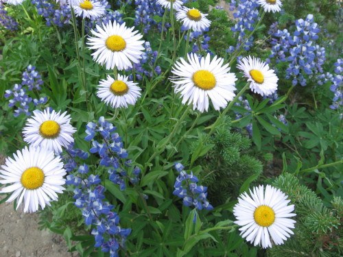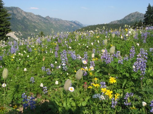 Hiked from Tipsoo Lake/Naches Peak Loop trail to American Lake via the Dewey Lake trail, Pacific Crest Trail. We had gorgeous weather and the wildflowers were amazing! I couldn't have asked for more! The hike is a bit more strenuous than the statistics would have you believe. The ups and downs are steeper than I expected so the total elevation gain was substantially more than the 1500' difference from start to finish. I would rather have spent a resting day at the lake than hiked back out the very next day. It was so pretty and that would have been easy to do. Muskitoes and flies were out, but I used dryer sheets (in my pockets - someone told me it would work) and bug spray and I escaped fairly unharmed by them. There is one downed tree to cross over just after Dewey lake, but it is easy to pass over. No snow!