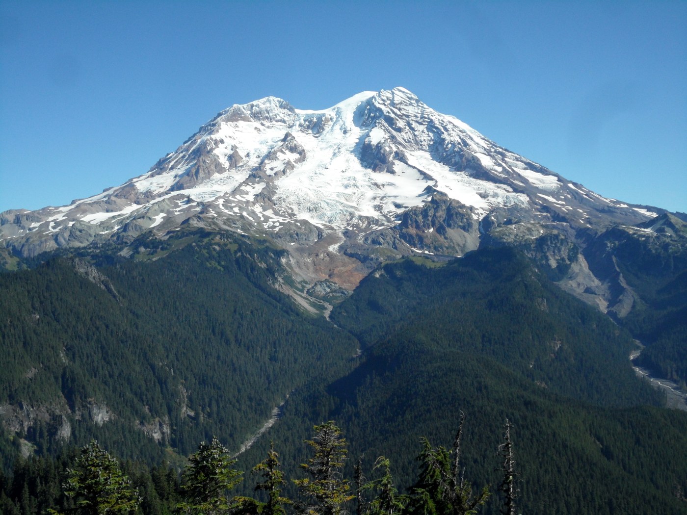 Took FS road 59 9 miles to the end (catching an awesome mtn view along the way). Road is steep and a little rough for the first 4-5 miles, but nothing my '89 K-car couldn't handle. Some puddles and potholes, but not too bad. After reaching a high point, the road markedly improves until the end. The trail is marked Puyallup Trail #248. Immediately I caught some sneaks of Rainier through the trees. I arrived at Beljica meadows shortly, and treaded along to Goat Lake. Goat lake is peaceful, but there are bugs. The trail all the way to Goat Lake is fairly flat and easy, but then it starts to go up. I reached a fork in the trail just after leaving the lake, left to Gobblers Knob, right to Lake Christine (another approach some people come from). I went left and started heading up. The trail climbs steadily through the forest, and soon I noticed the boundary of the National park. There were more downed trees and over growth in the np, but all easy to manage. Before I knew it, I started getting glimpses of the mountain, and was writing in anticipation for the view at the top. There is a fire lookout with a porch that makes a great place to sit and stare at the mountain. It was a very clear day, and was able to see St. Helens, Hood, the Olympics, Tacoma and Goat Lake I was just at the shores of. I spent about an hour at the top enjoying the views, then headed back down the same way.