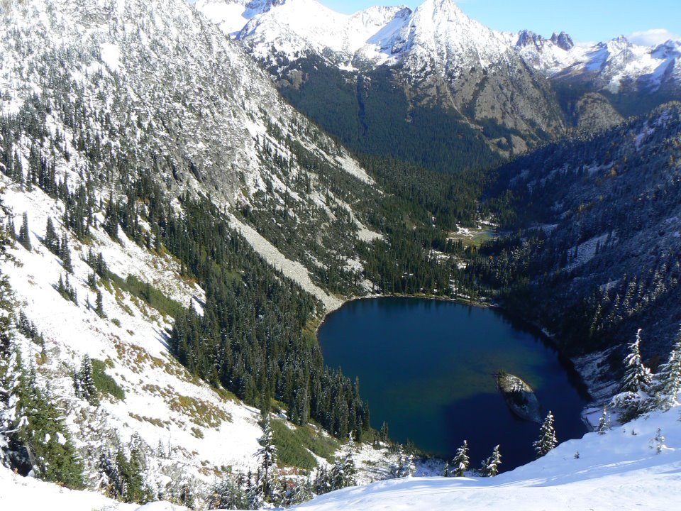 First time I hiked this. Started at 10:30am and hiked the counter clockwise route, It was a beautiful day and was glad I brought the trekking poles because of snow. Could still find the trail, but one more snow event could be an issue. About halfway past Lake Ann there was solid snow. Was able to make the full loop and the snow on the larches made an interesting contrast. Some hikers turned back before the pass because of snow. There was about a foot to a foot and a half feet of snow at the pass. This might have been my last high elevation hike this season. Was back at the car by 3:45pm.
