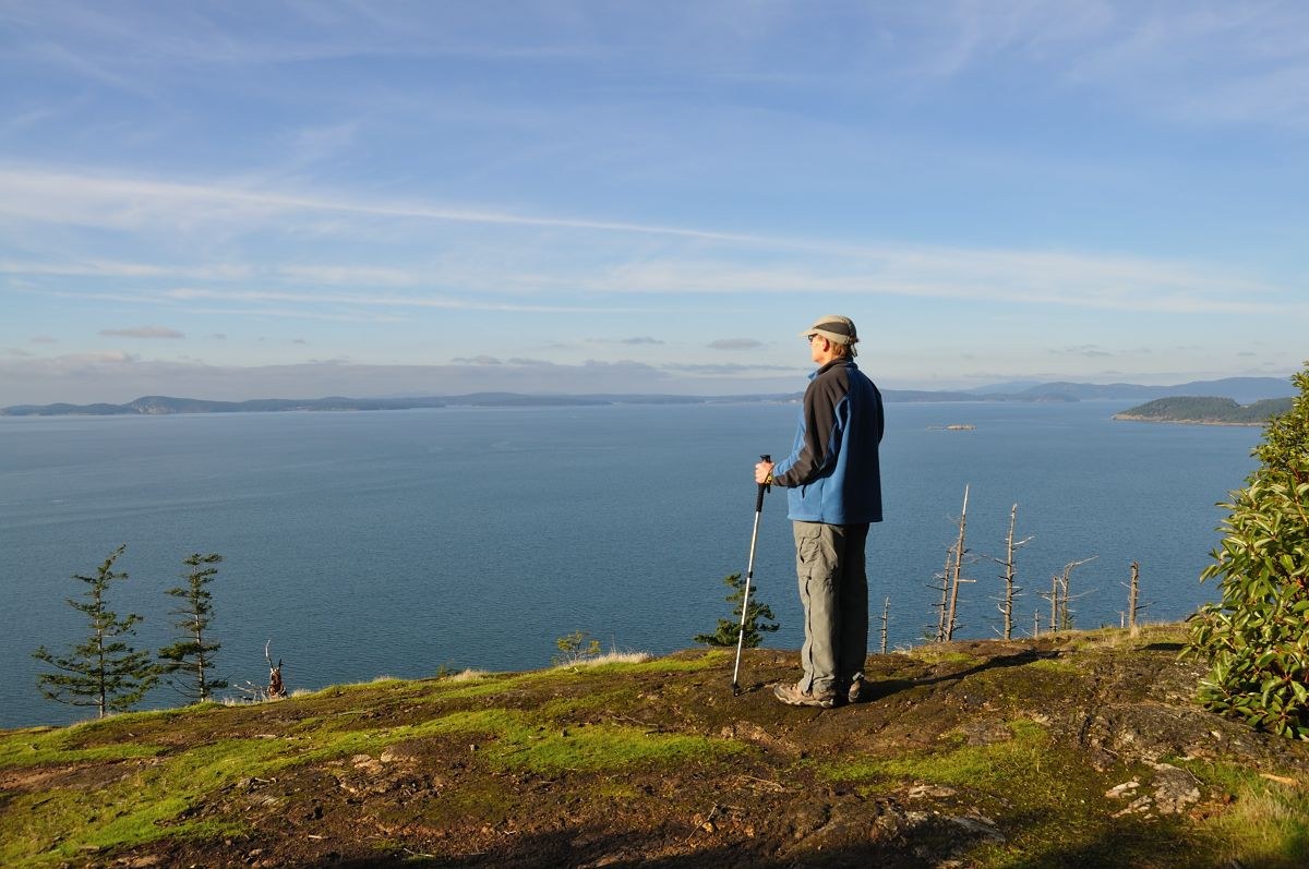 At Sares head, we rested a bit while enjoying the views and watching a Bald Eagle soar overhead. We hiked up the hill behind the bench at Sares head to see if the views were better -- no, not really, but we discovered someone had carried up 3 lawn chairs.