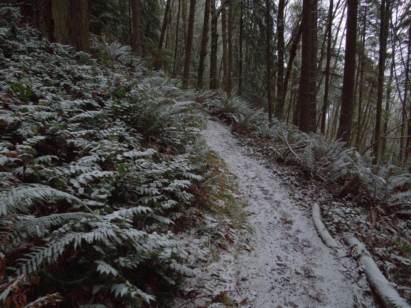 We chose the Wilderness Peak Trail on Cougar Mountain for a winter hike on a snowy day. The directions were accurate, and the roads were easily accessible. The trailhead is just on the side of the road, with a widened shoulder serving as the "parking area"--just be aware of that. I have included a picture in the report for reference.