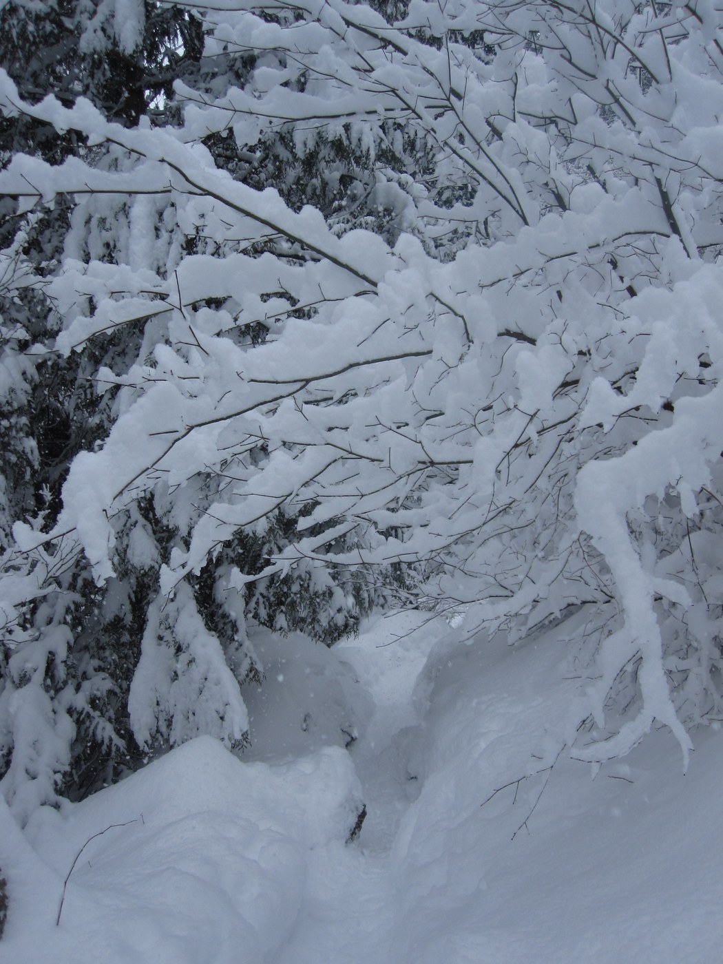 The trail is in good shape. Above 2000 ft it was snowing very hard and there was alot of snow. Snow shoes are deffinetly needed if you want to try and hike around the lake. I made it about half of the way around the lake and then lost the trail. I doubled back and my foot printe were already completly covered. Below 2000ft under the fresh snow is alot of slush.