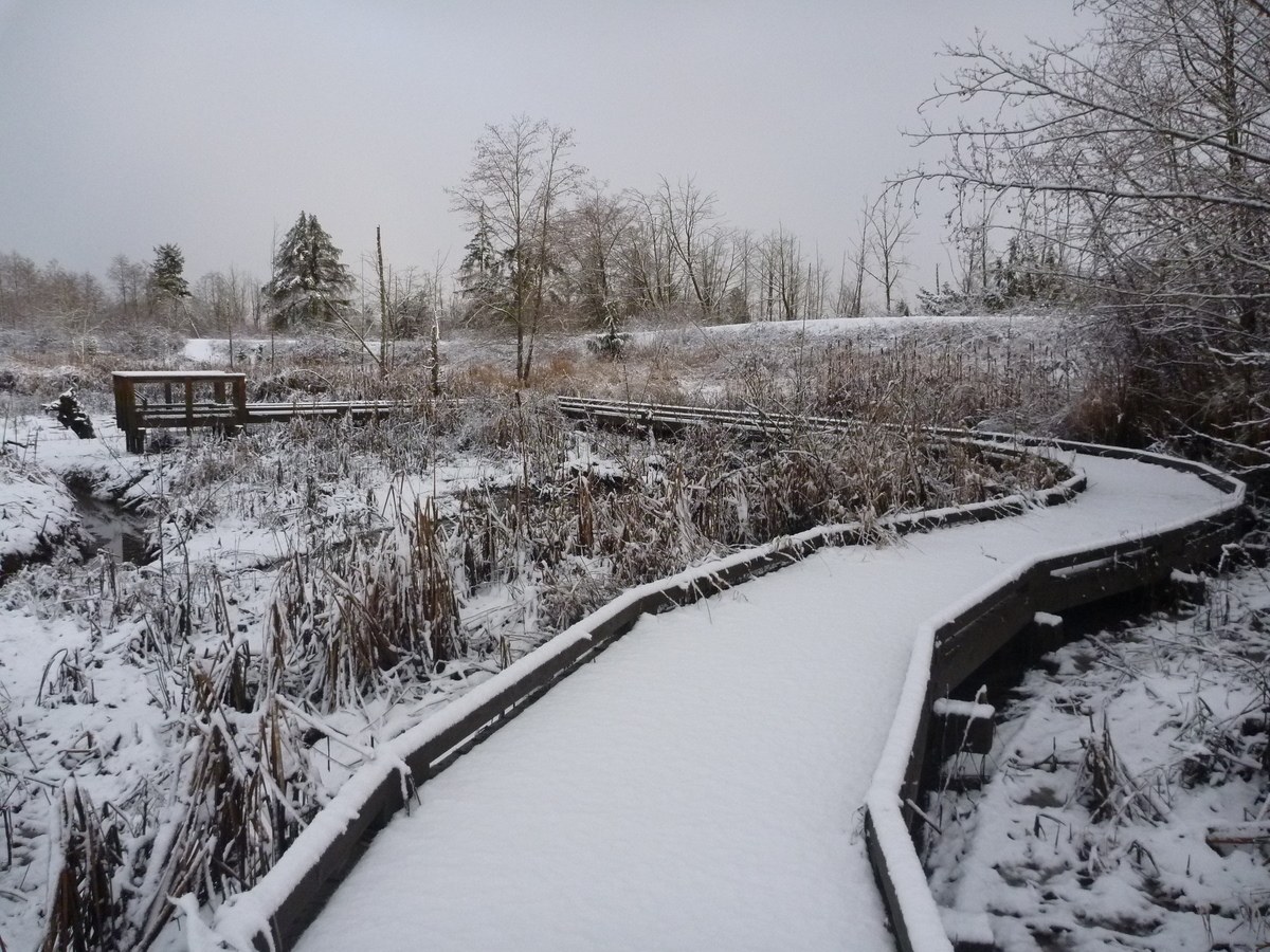 Pulled into the parking lot at 4pm. Despite the late hour (and the snow), there were two other parties hiking. Didn't have much time, so I just did the loop around the south part of Smith Island, and a short detour onto Spencer Island. Nice, flat trail, with lots of birds (small and large).