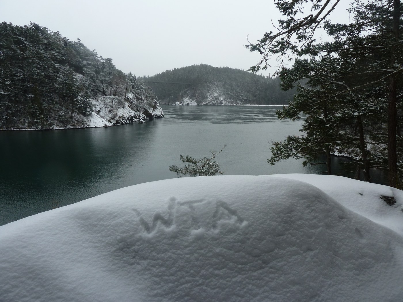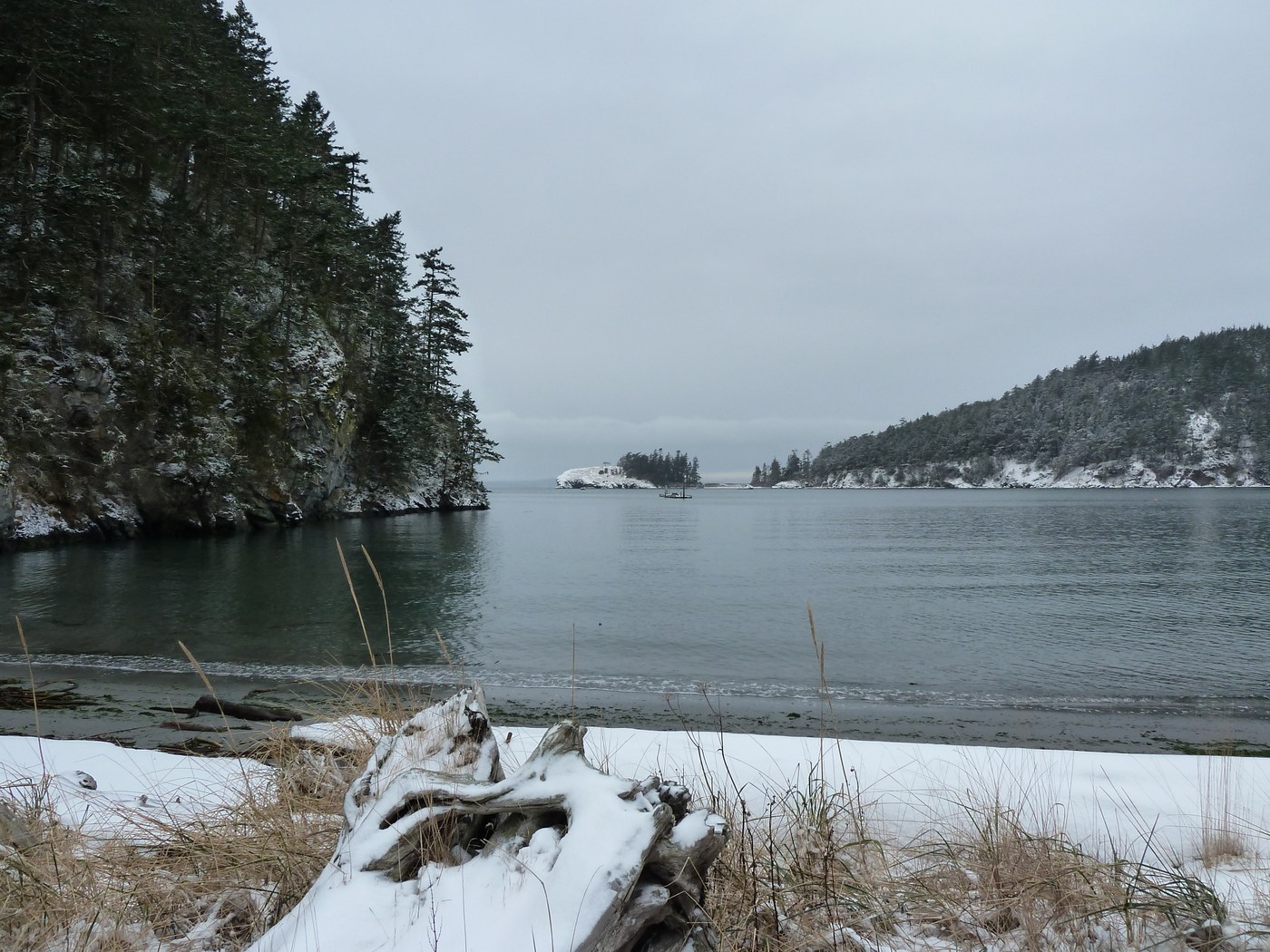 Work was cancelled so it made for a great day to take hike #3 even though it was mighty cold with 4 to 6 inches of snow on the ground at Deception Pass State Park. I had most of the park to myself. I only saw one other person as I was coming out. I hiked the Lighthouse Point Trail which is well maintained and has spectacular views of Bowman Bay, Deception Pass Bridge and the Inlet Passage between Fidalgo and Whidbey Island.