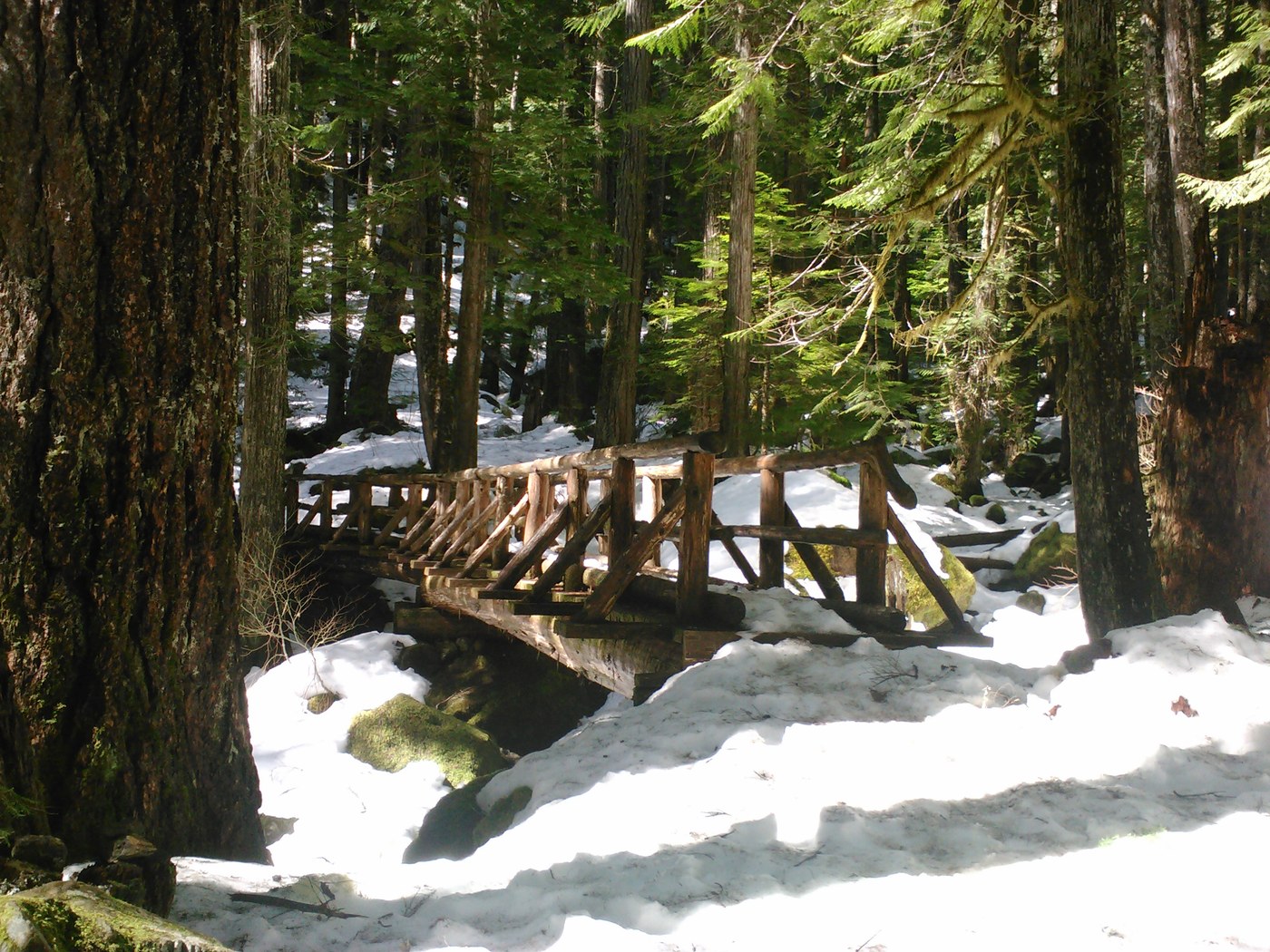 Did the trail in just my hiking boots,could have used my trekking pole, but did fine with out it. Coming back out the snow was getting a little slushy, due to the warm day.