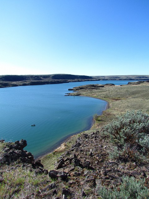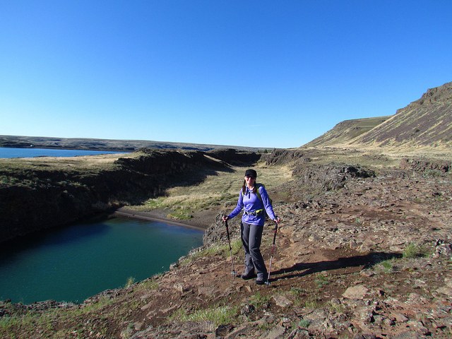 This was hike #2 on the eastern wa tour, it was on the way to steamboat rock just a slight detour. We parked at the fishing area and talked to some guys from Bonney Lake next town from where we live, they were really nice. We headed up the trail behind the pit toilet and were wow'd with views the rest of the hike. Our destination was to be summer falls but we didn't reach it, not sure where it was but we drove there instead after the hike. It wasn't all that, smaller falls. There are several flowers just starting to open another week it should be great! We only saw those 2 fishermen the whole time, no many boats or people out yet. No snakes or ticks on our trip. We did some climbing up and down nice wind keeping us perfect temp. I would come back to this one, only complaint was there was ALOT of broken glass along the way. I just don't get why people have to trash such beautiful areas.