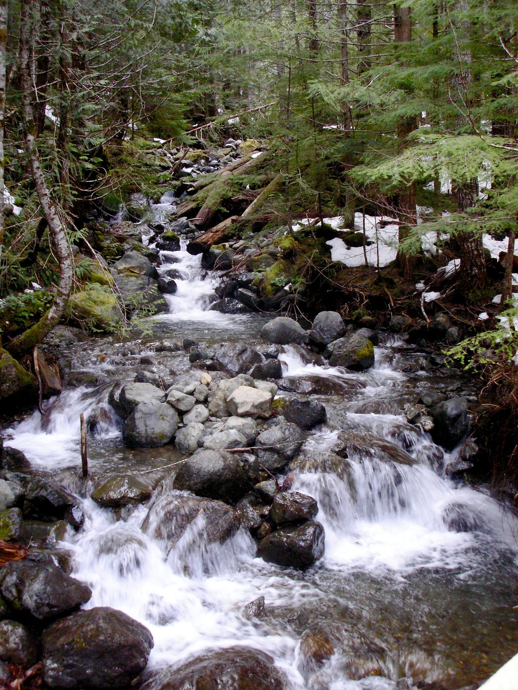 Opted for starting the hike by going left and immediately crossing the river. Work has already been done on the trail to clear it, so there were very few blow downs and all bridges were clear of snow and debris. Snow was encountered at Branch Creek but the trail is well packed and easy to follow. At the most, there was 5 inches and just when you are getting sick of it the snow vanishes.