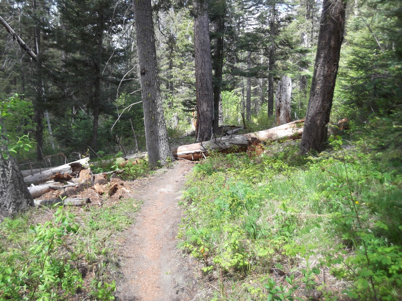 There are several blowdowns, but all easily navigable. There are also some muddy spots as well, and the trail is annoyingly overgrown in numerous places - pants and long sleeves would have saved me a few scratches.