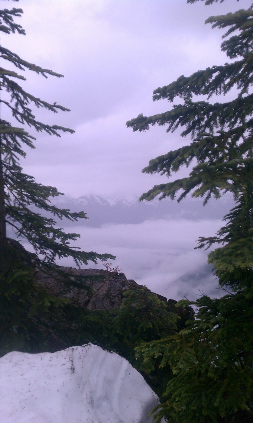 An old logging road is you means of accessing Harry's peak and when I say old I mean OLD!! Boulders and trees dot the path and you will have to mind your ankles in order to avoid ruining your hike. There was a light rain which made the already wet rout a regular stream for much of the trip (bring waterproof boots). When the water finally relents you find yourself in snow, (no crampons or snowshoes necessary)a welcome change from the boulders. The trail becomes a bit overgrown at this point but there are enough old and muddy bootprints for you keep on the path and make you way through. Harry's summit doesn't quite clear the tree line so the views are limited but beautiful non the less. This is a great training hike with little foot traffic and of course when its over you'll be able to say you conquered Dirty Harry's filthy Peak :) (trekking poles advised especially for the trip down)