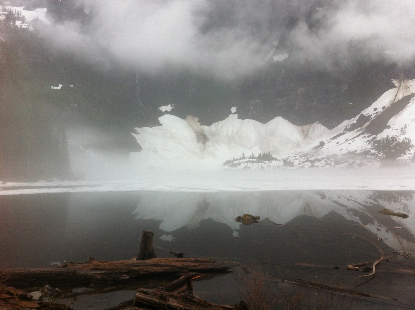 It is short(5.4 miles round trip), but there's an elevation of 1500 feet in just 2 miles and thus it is a decent workout. The trail is really pretty due to the Research Natural Area. But the real reward is at the end. The lake was spectacular, half covered in snow and fog creating magic. And to think that this was the same weekend as the heat wave in the rest of the country.