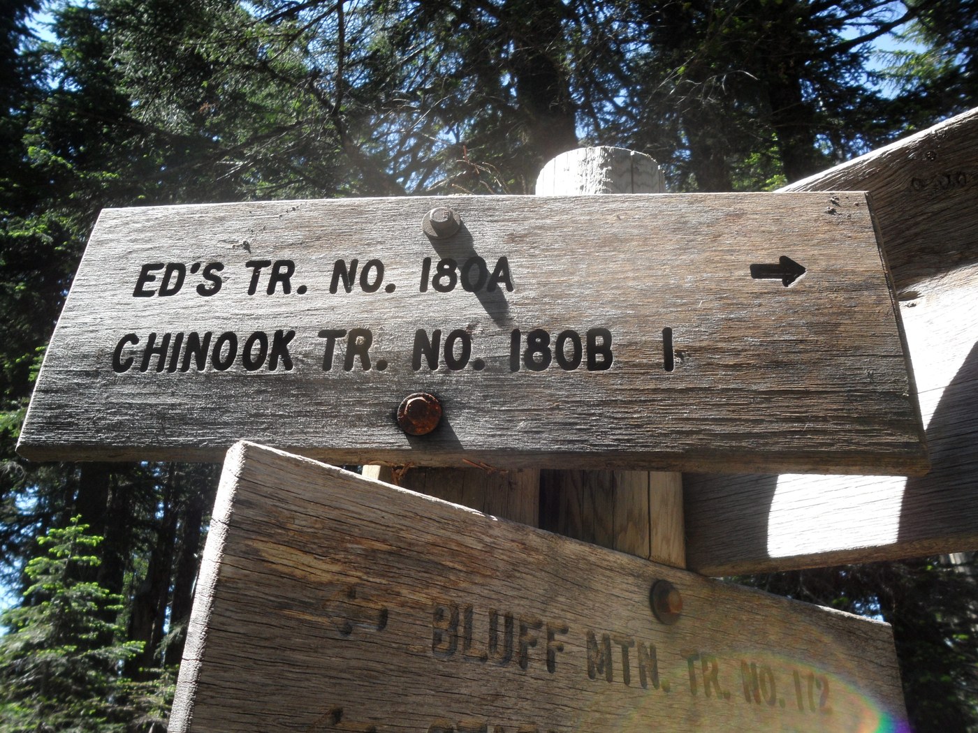 I started this hike from the trail that starts from the trailhead left of the parking lot. The trail is split in two, but they both come together in about 1/2 mile, so it doesnt matter which one you take. About a mile from the parking lot is a sign indicating that you are on Ed's trail. The views and the wildflowers are incredible the whole way. As other trip reports mention, along the hike you'll walk through and arch and then get to a rock scramble. The trail continues around, showing off views of Hood, Adams, St, Helens, and in the distance, Rainier, and more wildflowers than you can imagine.