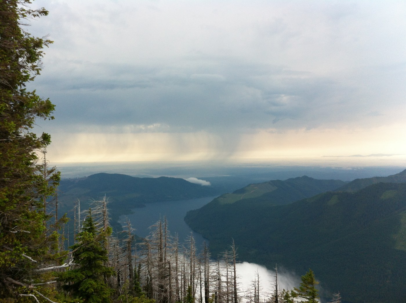 I would recommend taking the trail to the left when you reach the junction at Horse Camp. It's shorter but steeper and the other trail will be easier on your knees on the way down. Plus the views of Copper Mtn and Mt Ellinor would be at your back if you take the trail to the right on the way up. Keep you eye out for the tree that splits into four when the return trail heads down off the ridge.