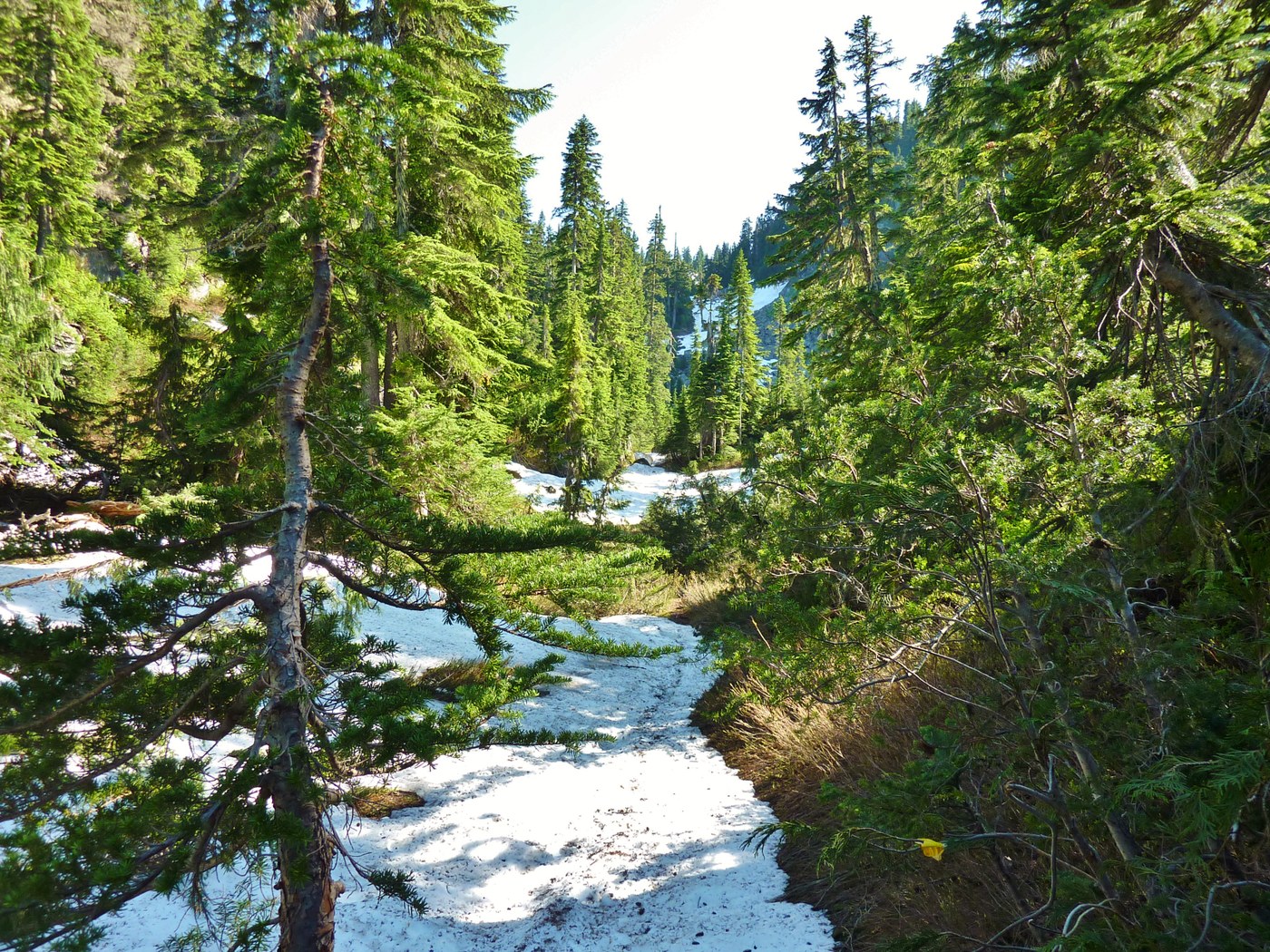 Trail was in great shape. A few little bridges to cross before the main steel bridge built in 2003 and the beginning of the Henry Jackson Wilderness and the start of the "Mini Mailbox Peak/Goat Hill" climb. The trail climbs steadily from the last bridge and continues for 2.25 mi. to the lake.