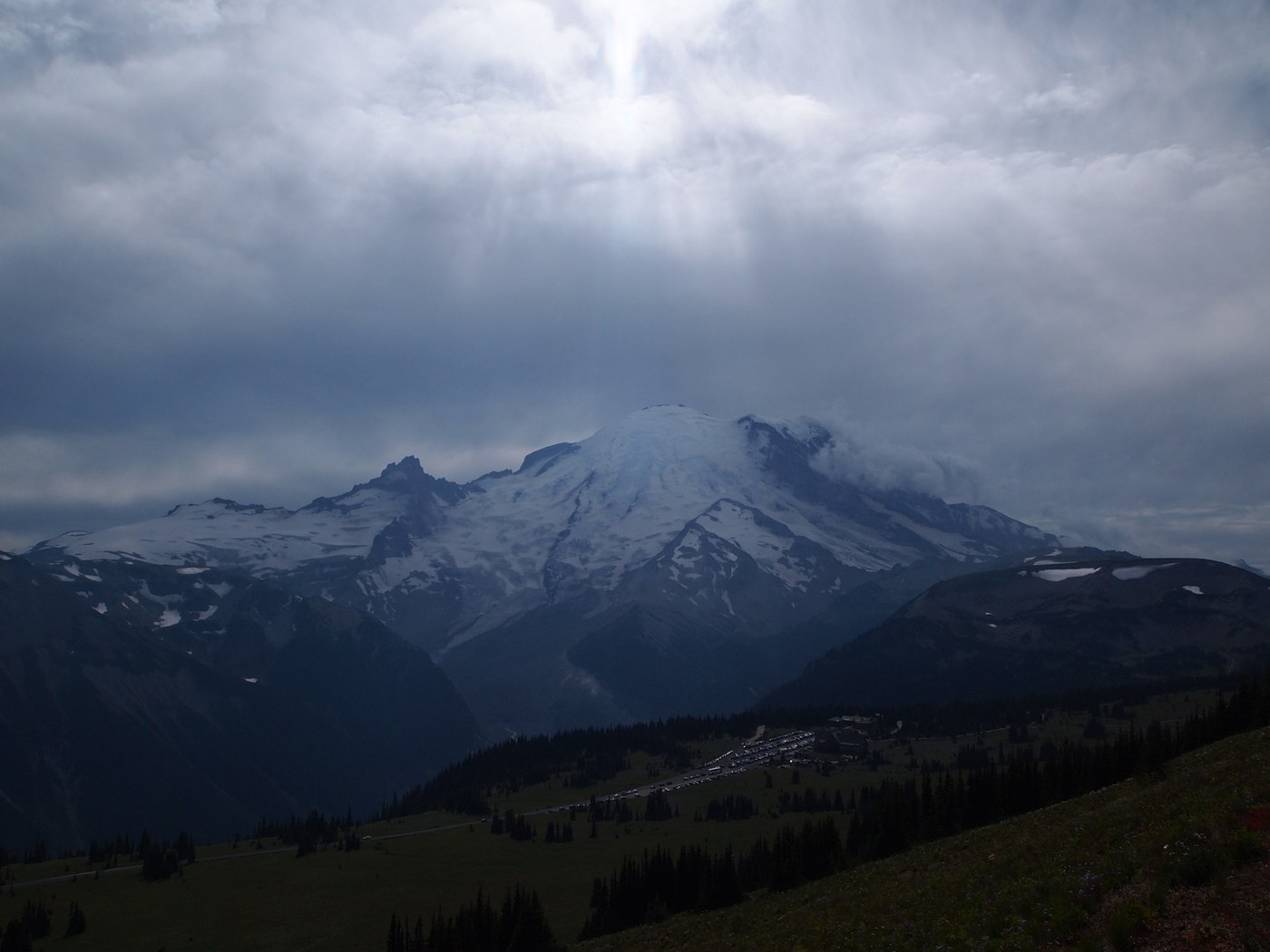 This trail from the Sunrise Visitor Center is in great condition. Views are fabulous from the top to Rainier and down to Sunrise and Clover Lakes, Huckleberry Park. You can see/hear cars on the Sunrise road below, but flower and mountain vistas more than compensate. For a 4 mile round trip hike with very little elevation gain (600 feet?), you get a lot of bang for your buck. Most people head the other way on Sourdough Ridge, so we had several stretches of trail to ourselves on a sunny Sunday. Pics are at: http://www.flickr.com/photos/51278183@N05/sets/72157631299492512/
