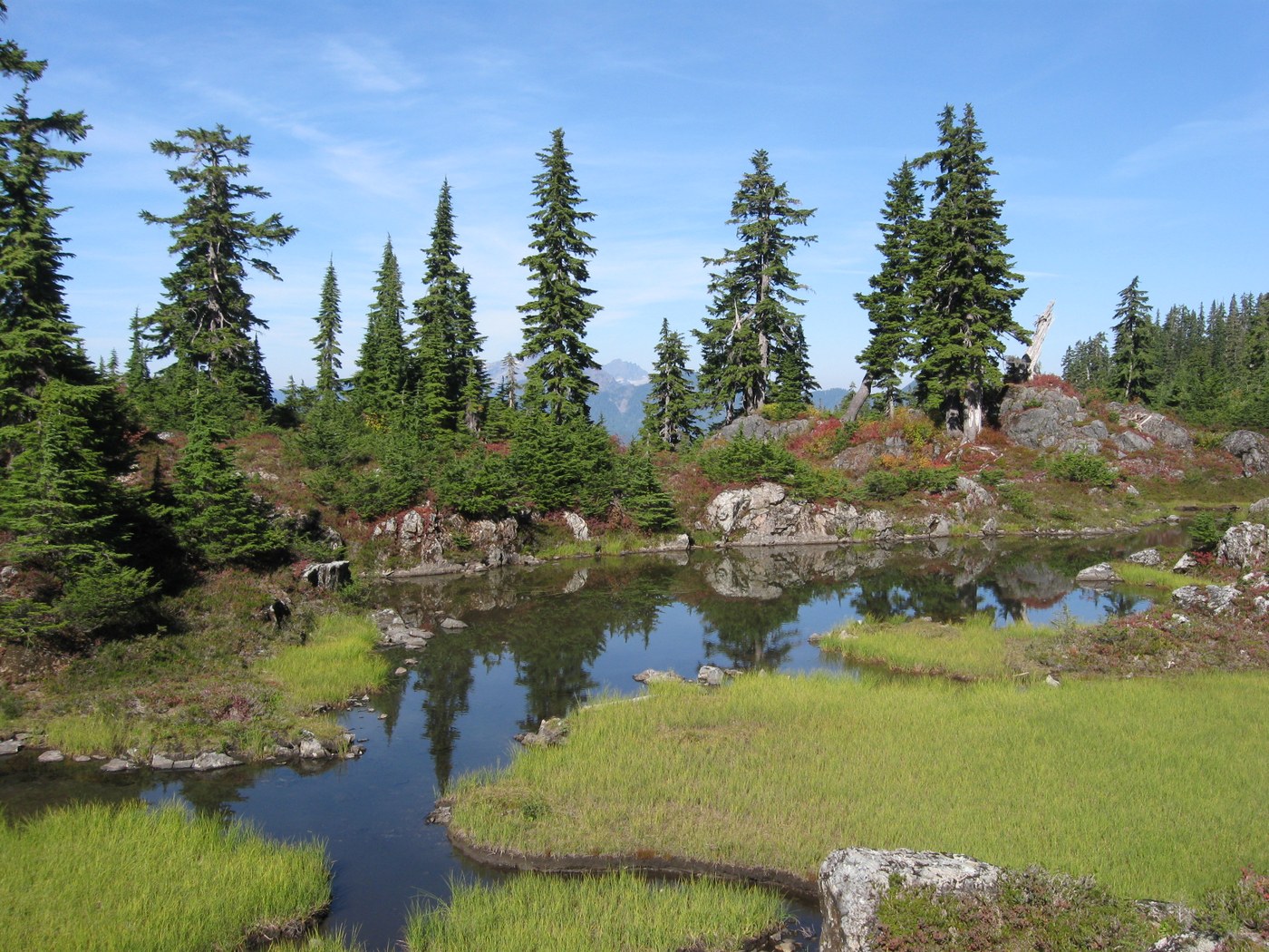 Minimum bugs. Some scat ,probly from a cat. Saw a frog. A sweet spot of the cascades. Surprisingly only one of the tarns showed the effects of the dry summer. About an 8 mile round trip to the lake and return. Well worth the climb