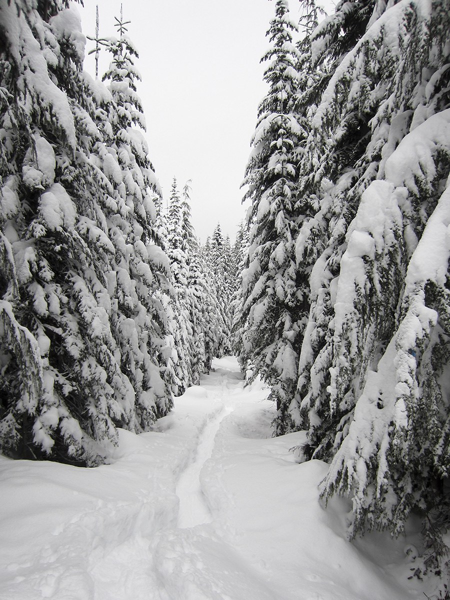 Drove up 542 with a few coworkers on Sunday to the lower ski area's parking lot, and trekked down from there for a mile or two. Next day, on Monday, drove up with a group of about a dozen, and made the trip all the way up to Artist Point. Conditions were rather cloudy so the views were a tad limited, but with all the fresh powder, it was one heck of a good time.. one hell of a good workout, too!