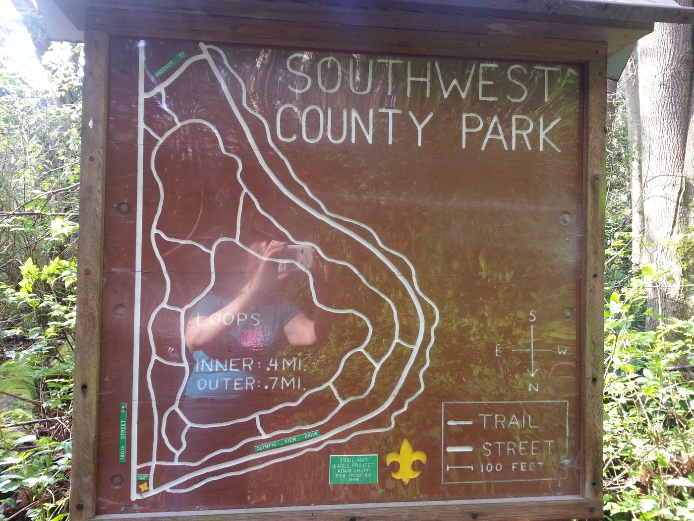 The trail is super easy and relatively flat with very slight hills in a forest environment. The pros about this route: there are numerous trails between the inner and outer loop that connect so this could take a few hours if you wanted to go on every little side trail, the trail is clearly defined and very easy to walk so people run and walk their dogs with ease. It is also close to the road where you park your car so if you get lost just listen for the sound of traffic. The cons: there are so many side trails that it is very easy to get turned around and there are no signs indicating where you are (except at the very beginning). Park is very limited and is exposed to the road so be sure to keep an eye out when you're near the trail head as it is easy to miss. I really enjoyed walking on this trail and would love to do it again.