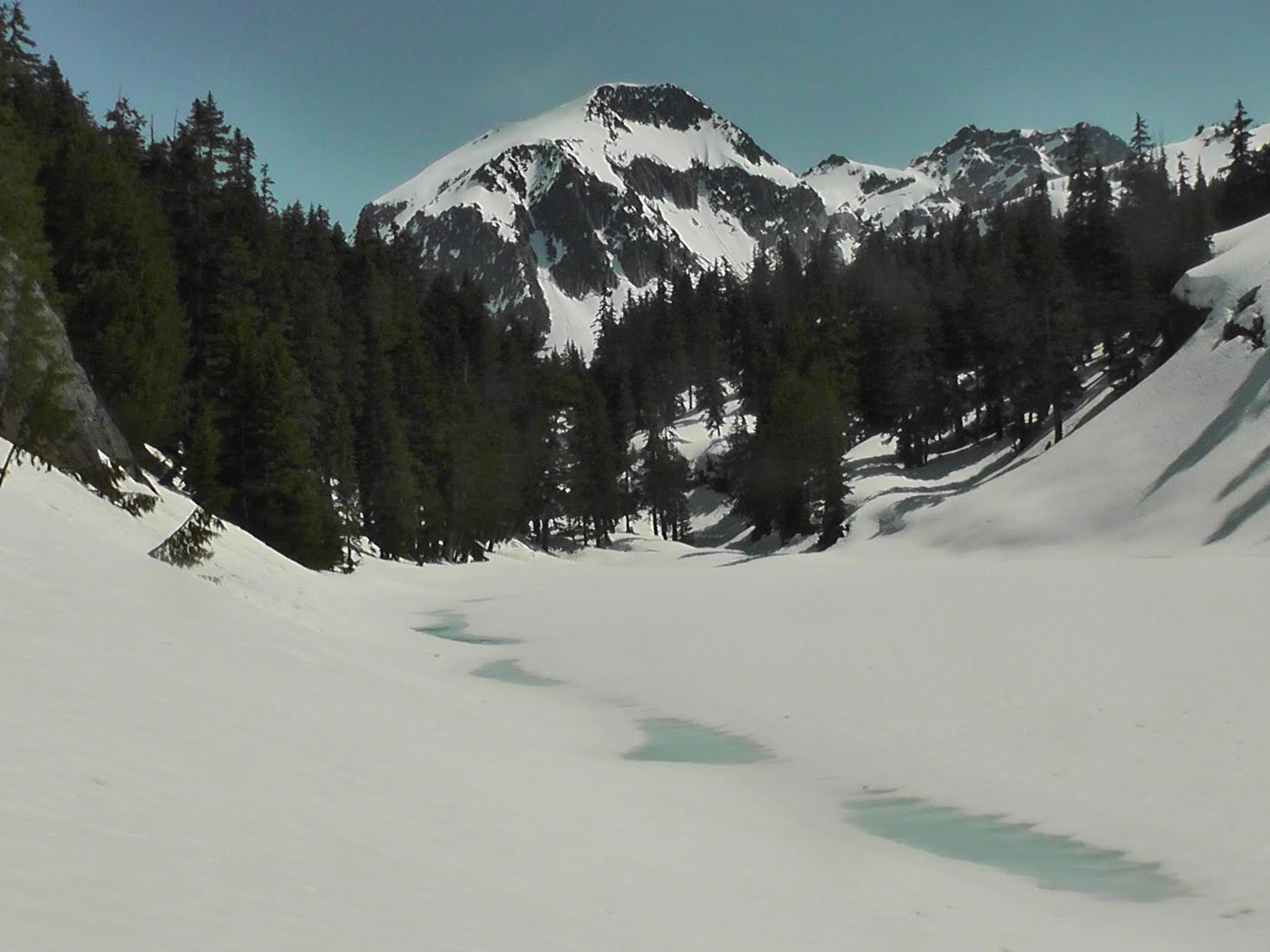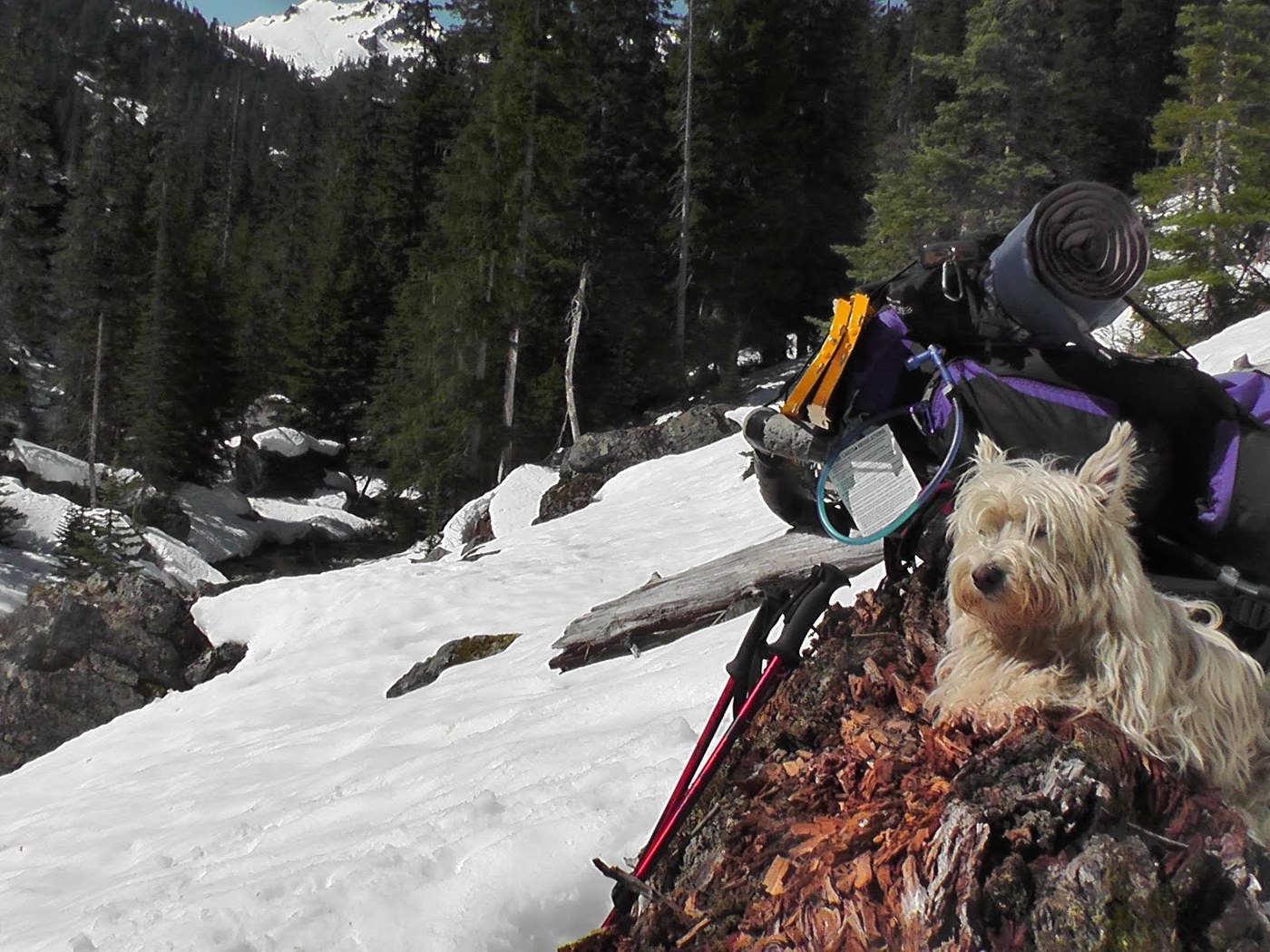 Continuous snowpack above about 3,000 feet, route finding skills were required. No bugs up there yet, although you'll encounter them in the Foss River Valley on the way in.