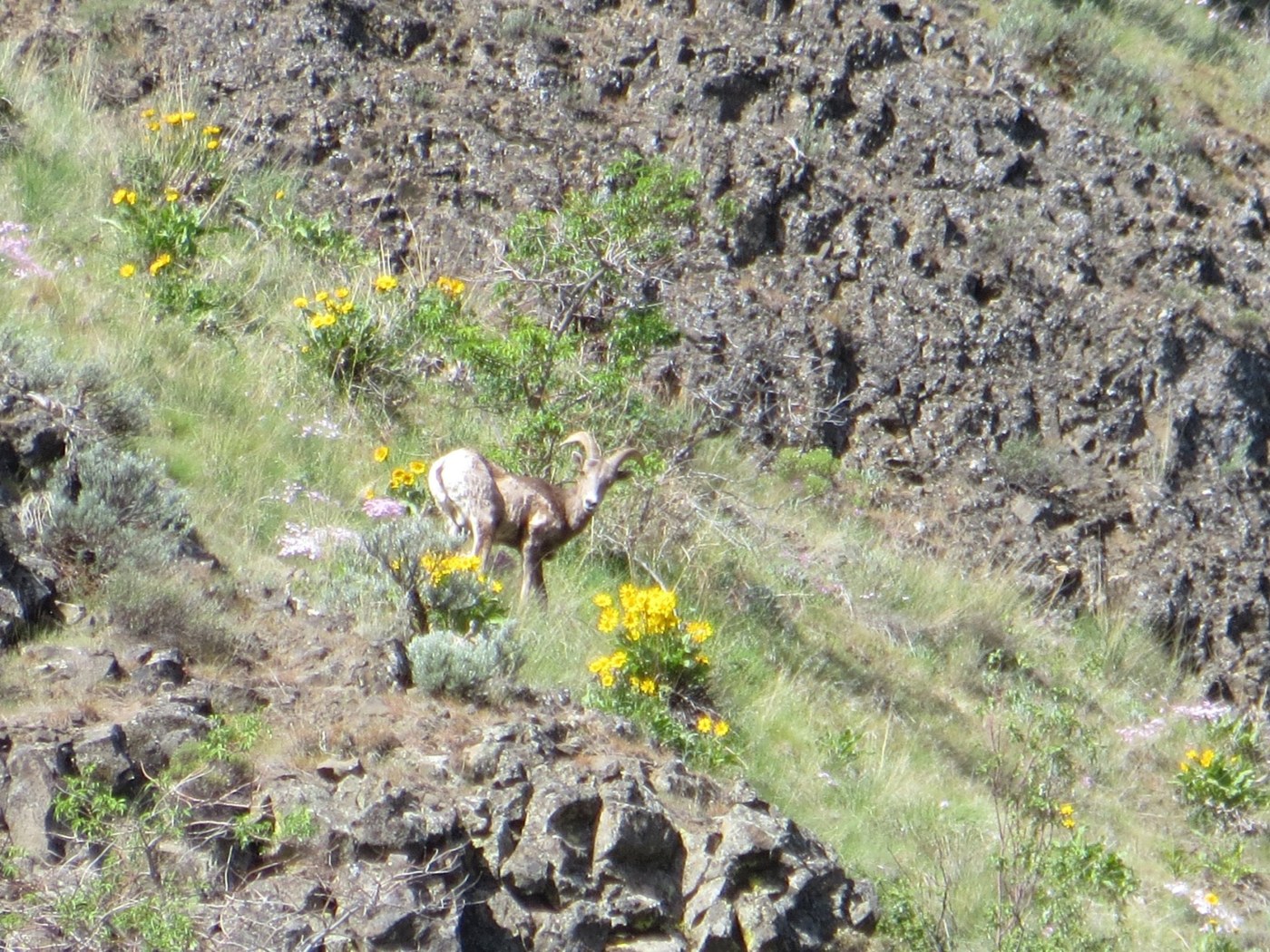 Plenty of blooming wildflowers: lupine & balsamroot on the trail going up to Umtanum Ridge, oregon grape & miner's lettuce on the canyon floor; also lilacs and apple blossoms by the old settler's homestead.