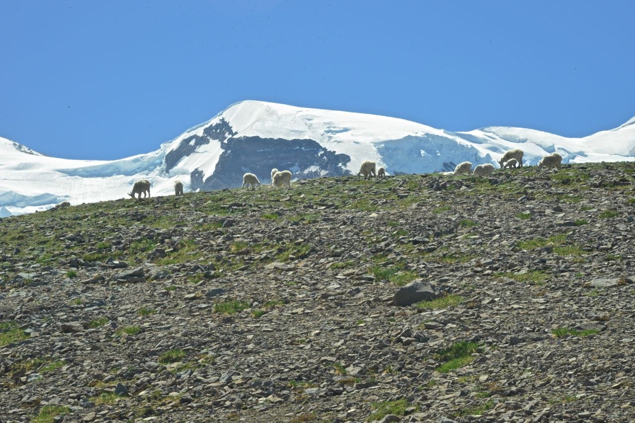 The elk flies seemed fewer today, perhaps because we killed so many yesterday on our way to Berkeley Park! :)! There were 3 small snow patches on the trail to First Burroughs. Because I'm a "wimp" on snow on steep sidehills, they made me nervous, but for most they were no problem and are probably gone by now! I waited on Second Burroughs while Bob continued on to Third Burroughs. There was a herd of goats midway on the trail to Third Burroughs. We returned to Sunrise via the Sunrise Rim Trail which had a 50 yard area of snow with a well-worn boot path. Magenta paintbrush, dwarf lupine, rust-colored paintbrush, yellow daisies, and phlox were some of the flowers seen.