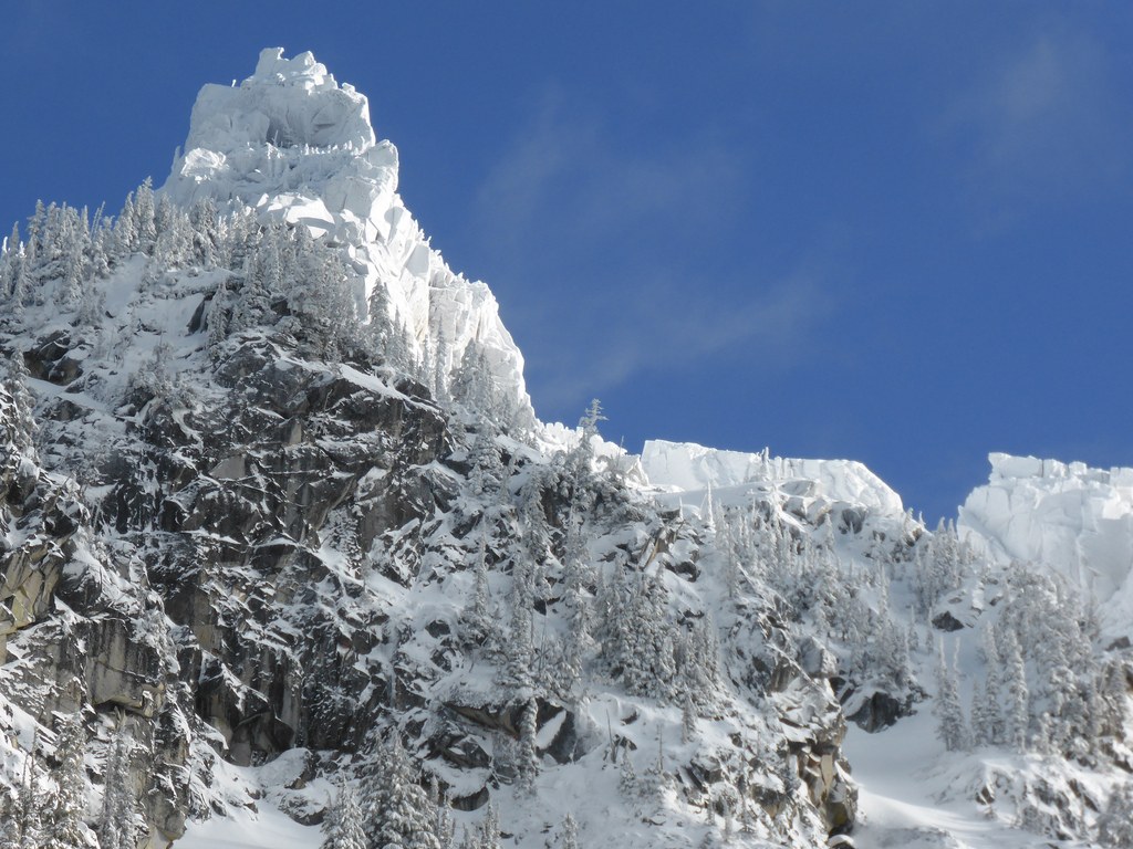 We (me and my dog) did a nice snowshoe to Surprise Gap today. I was hoping for views of the Glacier Peak, but there were some very persistent clouds in the Stevens Pass area that blocked all views. The valley of the Surprise Creek itself was clear though, so still some great views! The snow conditions where very good, so very enjoyable overall.