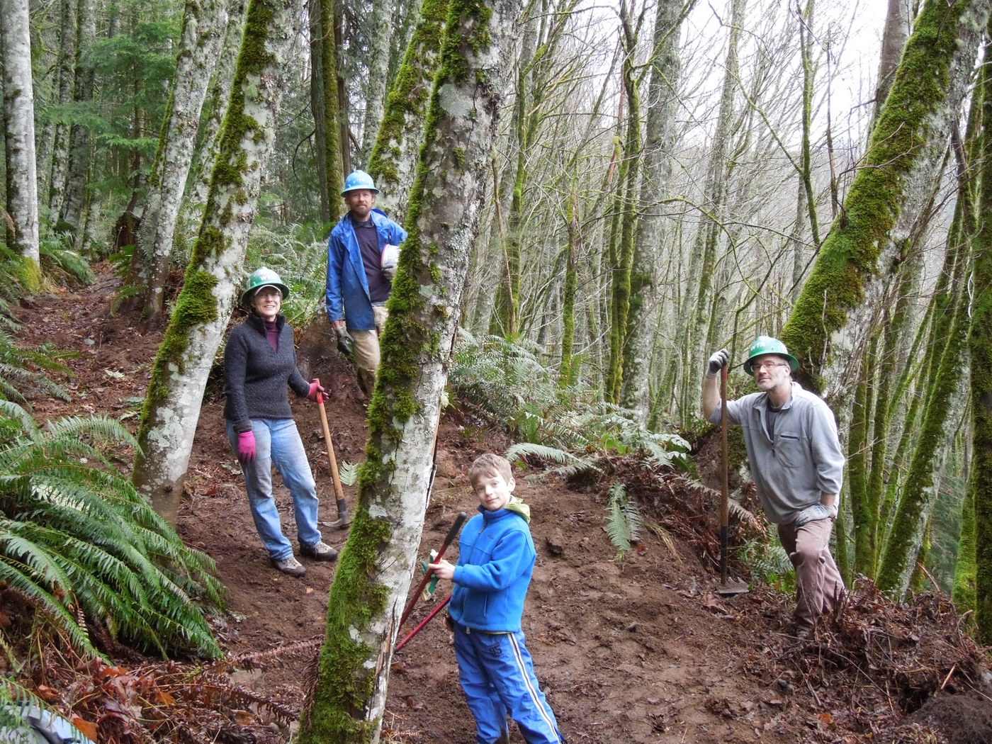 Our two major projects were widening the "Bogaards Bridge" over a small creek and improving tread on the lower part of the new trail. Most of the work party removed roots, dug up mineral soil for new tread, and filled in pits with rock and soil.