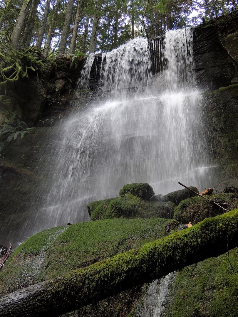 It is about 4.75 miles out-and-back from the Overlook to the outlet waterfall at Lost Lake with about 1,200' of elevation gain.
