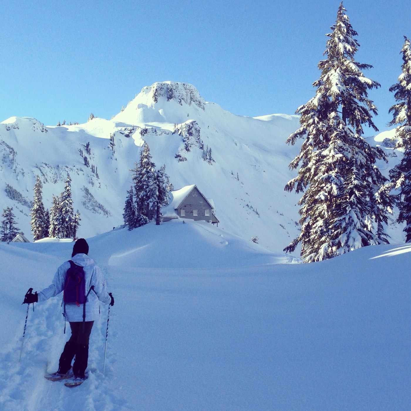 This was my second snowshoe trip. I took my 17yr old daughter, a couple old school snowshoes, lots of water, sunglasses, sunscreen, peanut butter, & chocolate. We wore snow gear and were thankful. It was a bluebird day and bitter cold. 11 inches of powder made this trip nice.