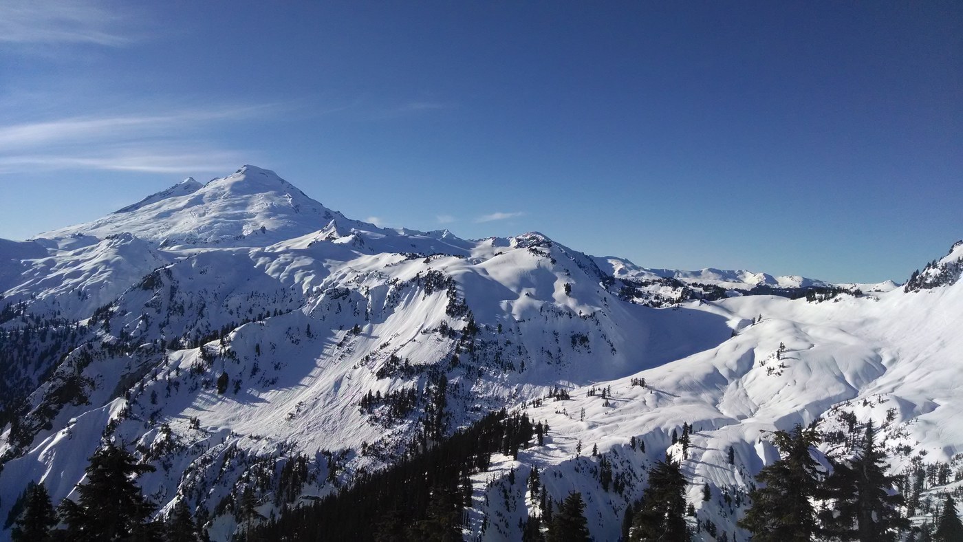 As for conditions, the snow tended to be hard-packed, and you might be better off with crampons or microspikes, but I wore snowshoes the whole day, and did fine. The Mt. Baker Hwy. is in good condition, and only the last 10 miles or so will you see snow of any note. However, for the most part, the road is dry (though watch out for ice in the early morning from snow melting from the day before). Parking lot is icy, but my Ford Focus had no problems...just take it slow and watch out for numerous skiers heading to the slopes!