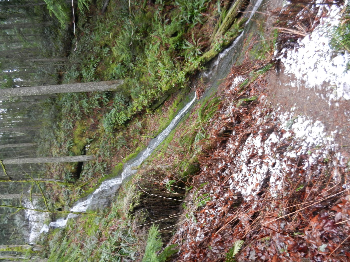 I had not hiked on the north side of Tiger Mtn. in over a year. Started this loop trip from the High Point Trailhead. Hiked the connector trail east to the parking area for the Cable Line Trail. Went up the trail that switchbacks up to the PSE power line, then the trail goes straight up the steep hill side. When I got to the Tiger Mtn. Trail, I headed back down hill to the West Tiger No. 3 Trail. Then went up hill to the junction with the Talus Rock Trail. Hiked this trail over to Talus Caves. Along the way there was some snow on the trail and the tall water fall at the unnamed creek that was flowing at a good rate. From the caves I hiked down the Nook Trail.