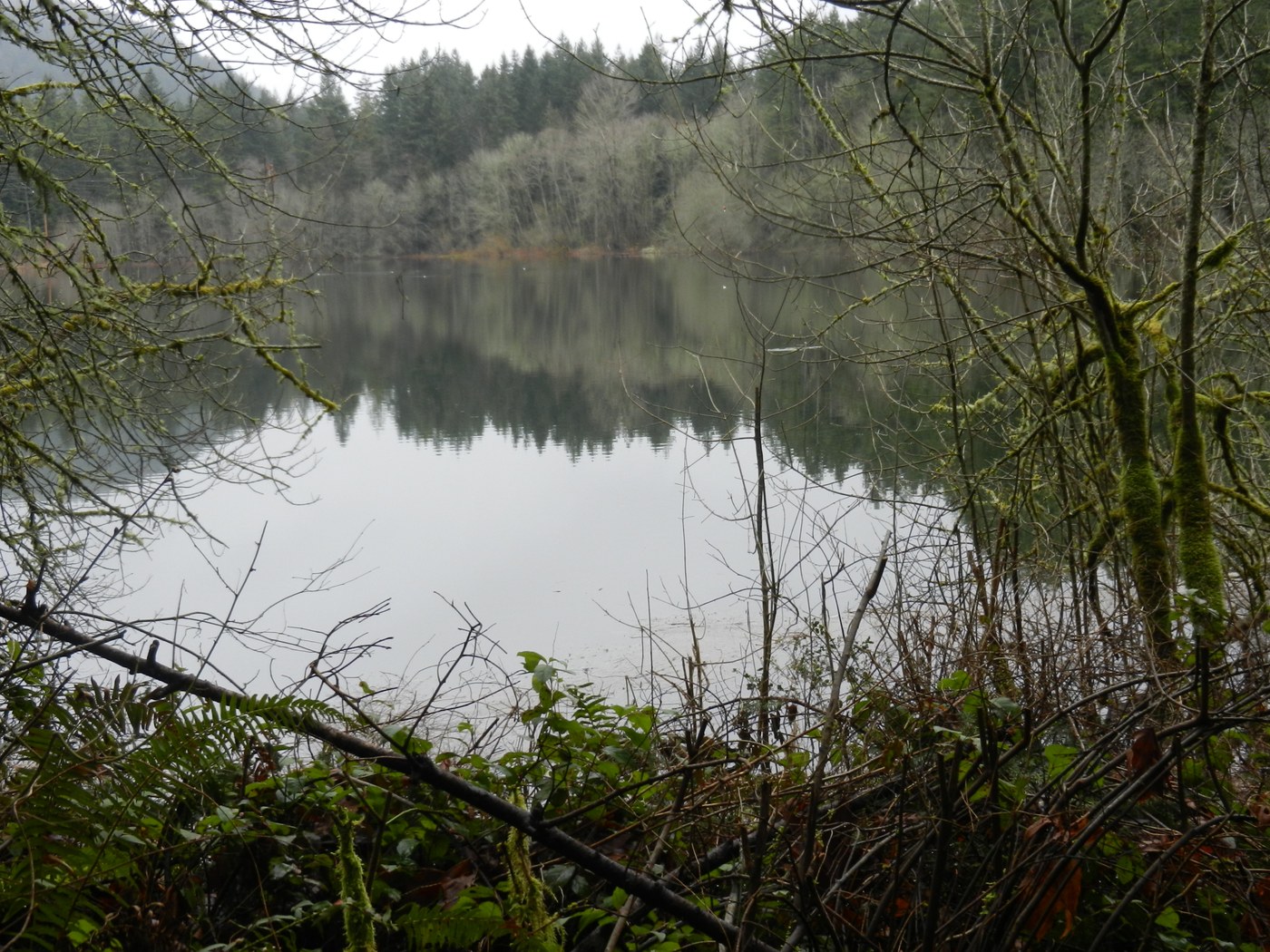 About half way down the Nook Trail, I stopped for lunch at the wooden bench that over looks the creek from the waterfall. A few other hikers were heading up as I ate. After lunch I hiked down to the Bus Trail and went west. At the trail junction by the old bus body, I took the trail around the west side of Tradition Lake. At the lake view spot I could see a few ducks swimming. From there I took the power line trail over to the Swamp Trail and hiked it back to the parking lot to complete the loop. Didn't see to many hikers, except on the West Tiger No. 3 Trail, where there were many people heading up or down the trail. On the other trails I saw very few other hikers. So if you get off of the main trail to West Tiger No. 3, you'll have a better time with no crowds. When I got back to the parking lot, it began to rain. Other hikers were just starting their hikes, some wearing cotton sweatpants. No to waterproof for a winter hike.