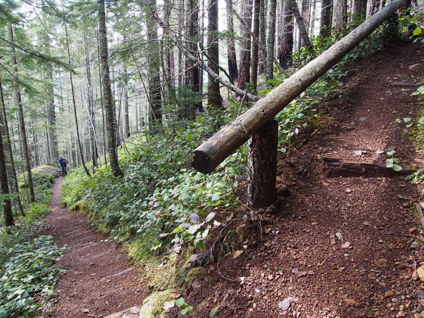 After crossing two bridges over now-roaring creeks that drain into Lake Cushman, the trail enters the woods and climbs steadily but reasonably. Trillium, salal, and yellow violet are blooming with Oregon grape nearly in bloom. There is a really nice bench and viewpoint at one mile. After that, the climb remains steady but at a much steeper grade. At 3,000 feet you reach Horse Camp, and the loop for the summit trail. I spun randomly and ended up facing right, so that’s the way we went. Not surprisingly, this is the longer way.