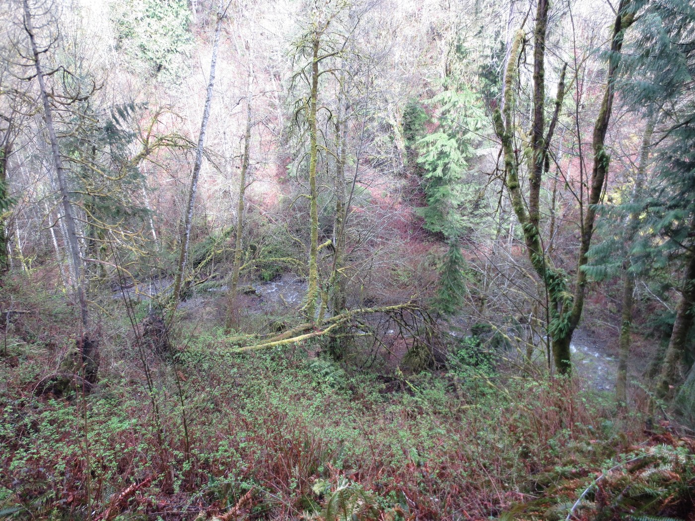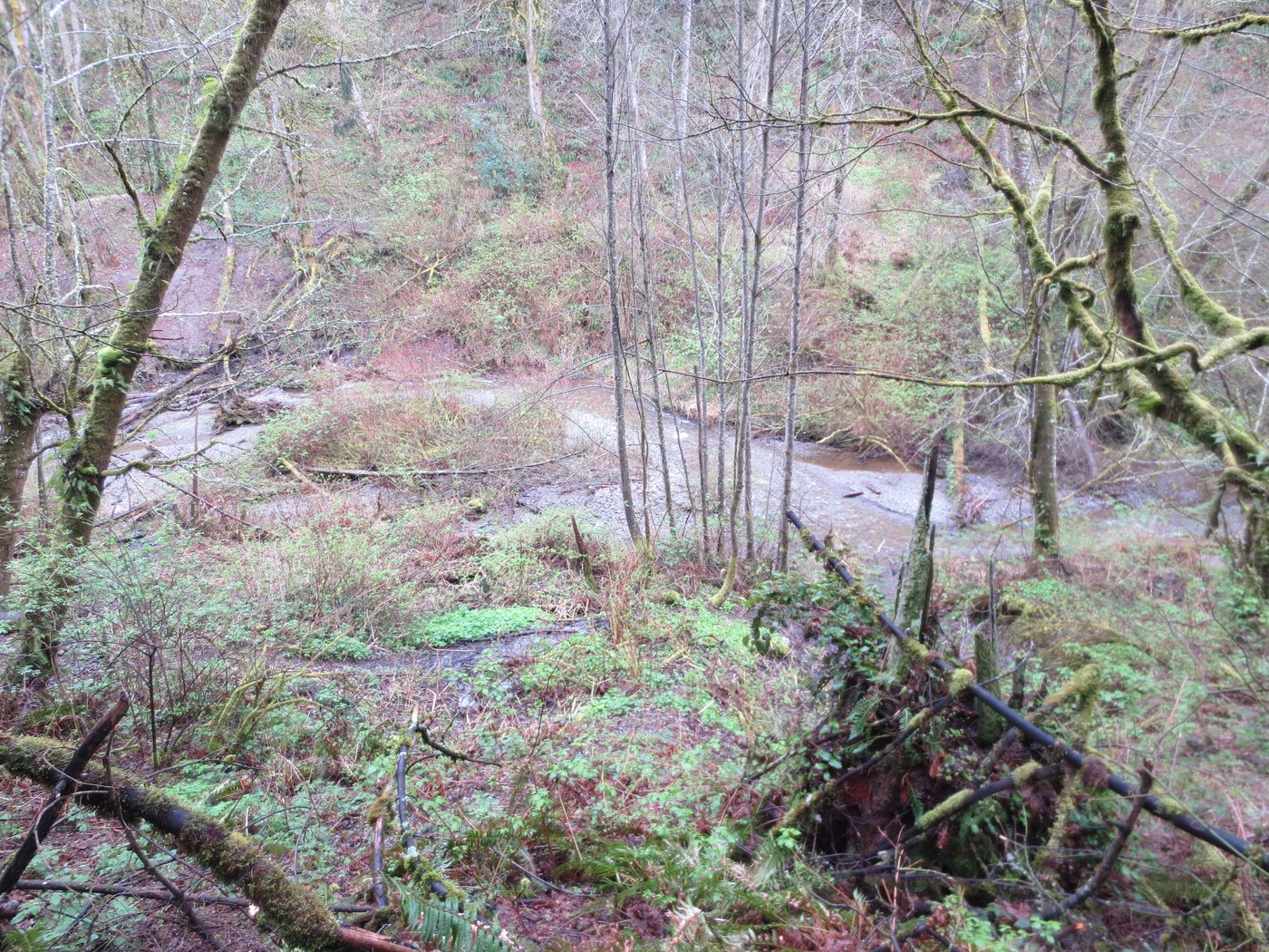 There was a few drops of rain, but the trail was in good condition. We started from 56th St and took the rim trail north until the farthest point to switchback downhill to the creek trail. The trail is narrow and has a steep slope along it, which may not be suitable for young children. The creek was flowing well after the recent rains. There were only a few spots on the southern edge of the creek trail that could use some trail work, otherwise it was in great condition, especially considering the steep slopes to the sides. This loop was 2.5 miles.